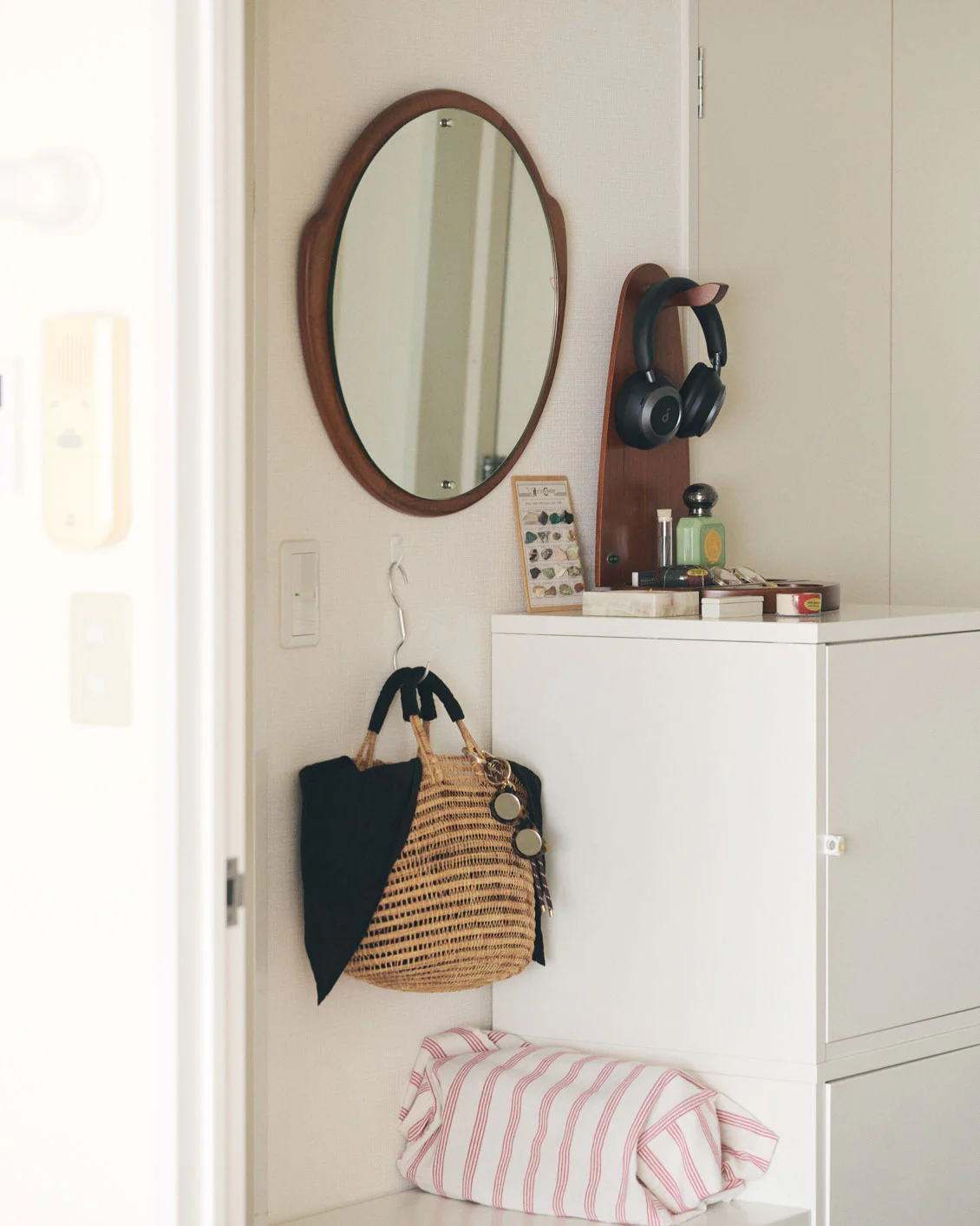 「少し前、玄関に鏡を取り付けて出かける前の準備スペースをつくりました。