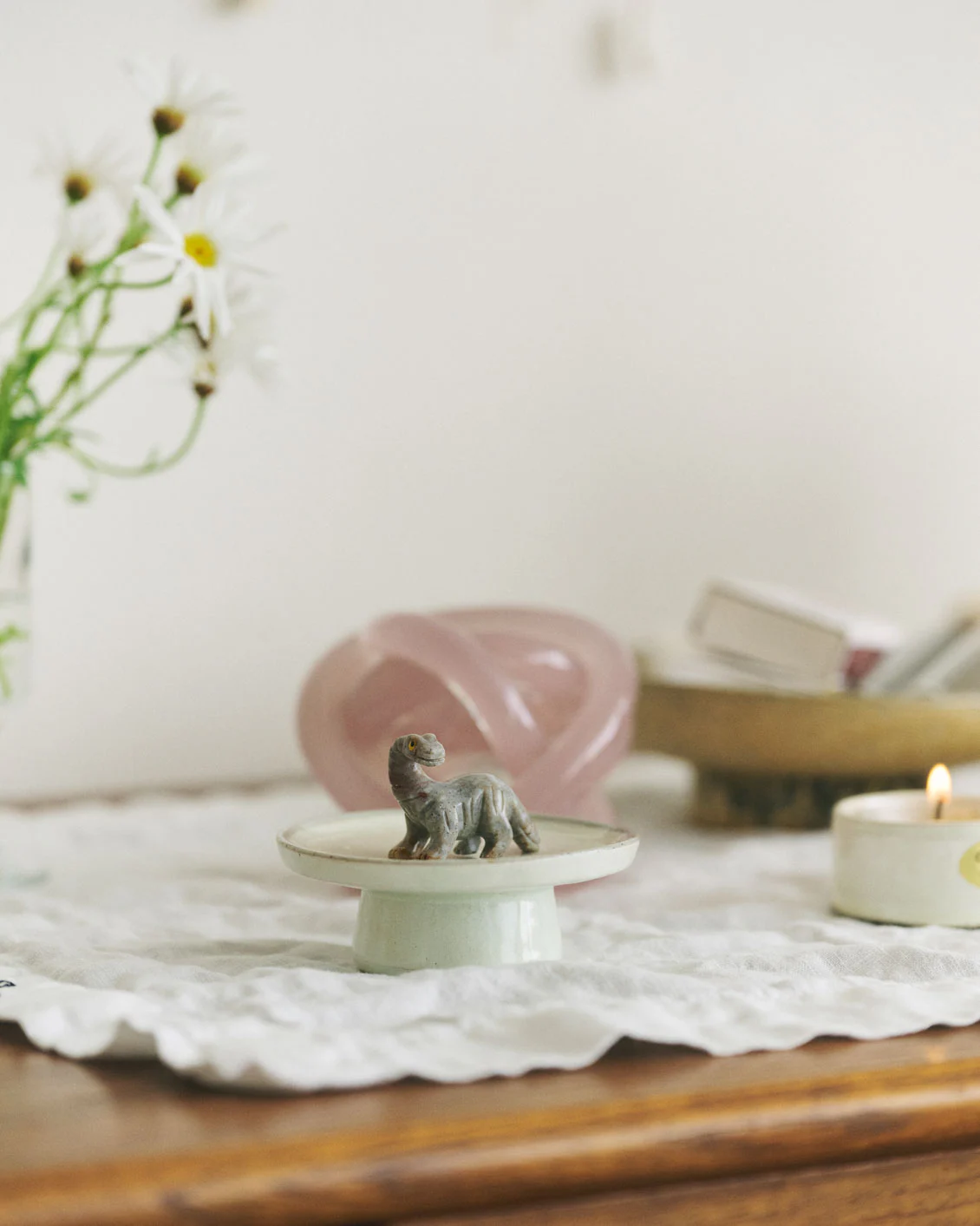 小さな恐竜の置き物は、先日蚤の市に出店させていただく機会があり、そのときたまたま隣になったお店に売られていて思わず連れ帰りました。