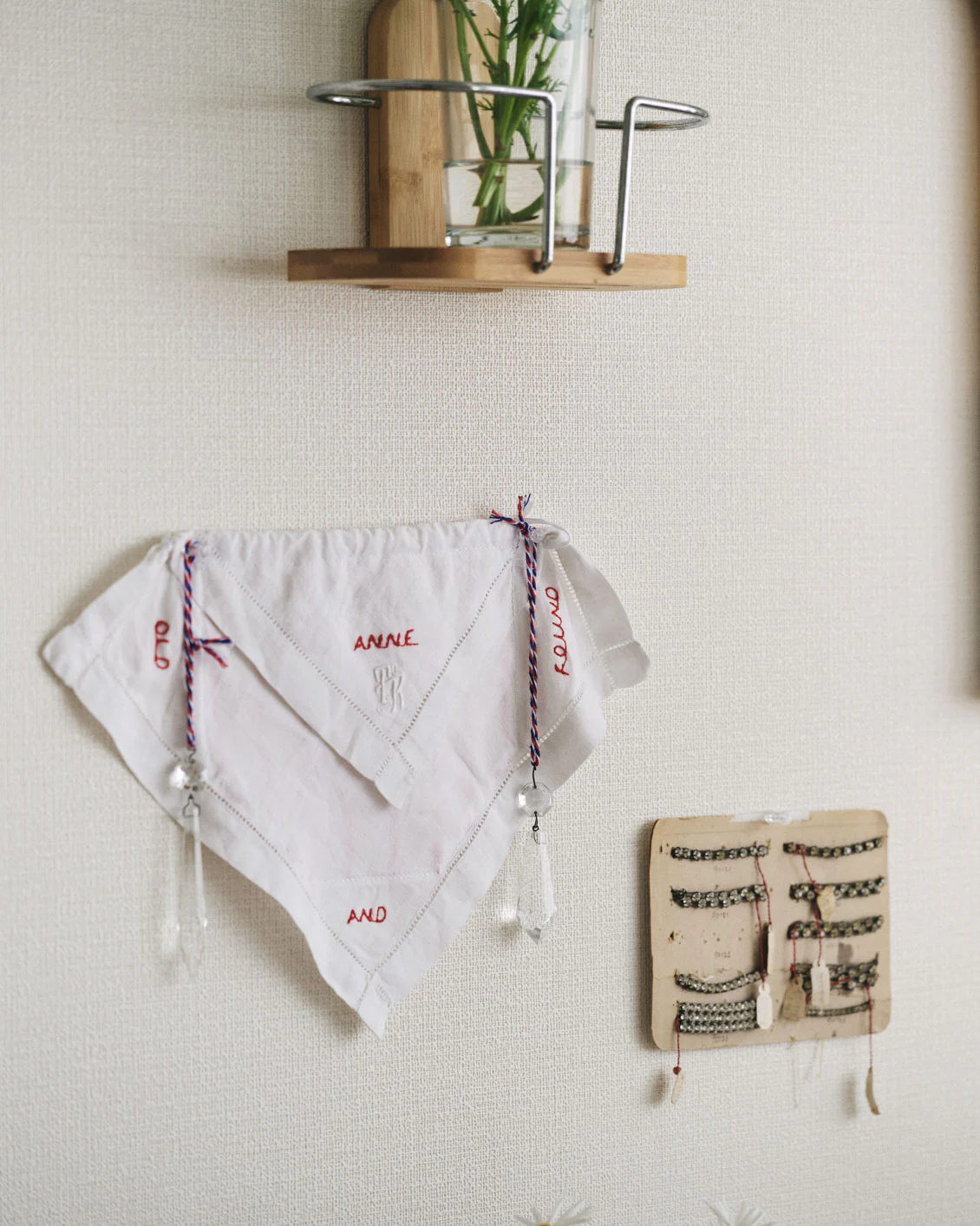 「このガラスのチャームは、シャンデリアのパーツをバラして作られたもの。これも海外の方が飾っているのを見て以来ずっと探していて、やっと出会えたお気に入りです。