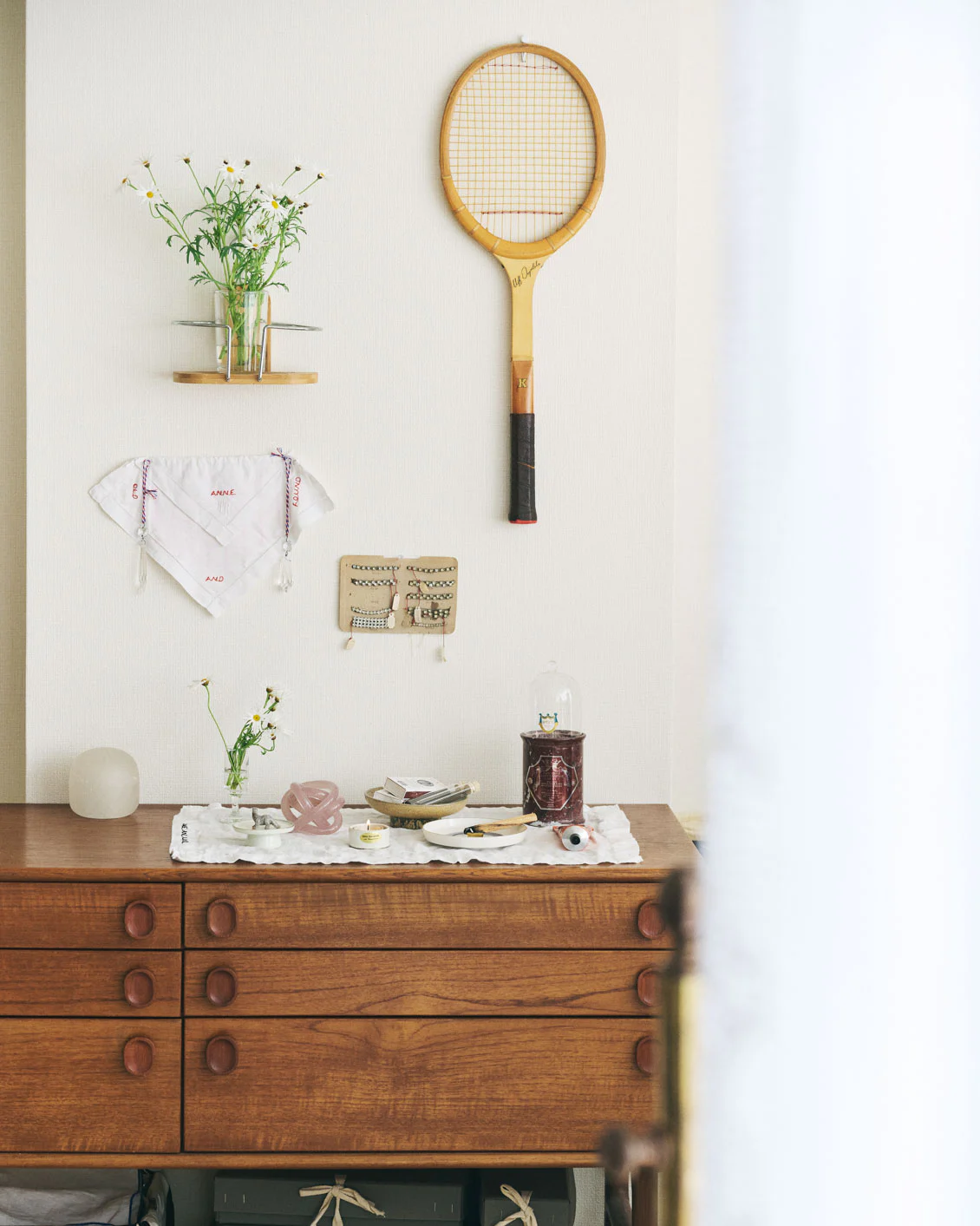 「ヴィンテージのテニスラケットは、SNSで海外のお部屋に置いてあるのを見てかわいいなと思い、フリマサイトで探して買いました。