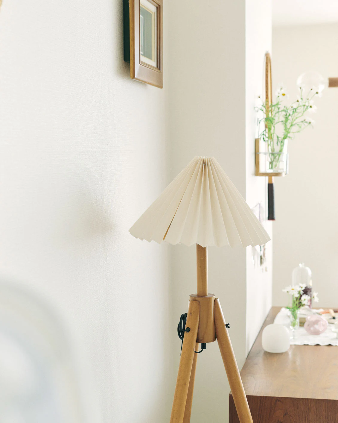 「このスタンドランプは元々プラスチックのシェードがついていたんですが、試しに別のペンダントライトについていたシェードを被せてみたらかわいかったので、入れ替えて使っています。