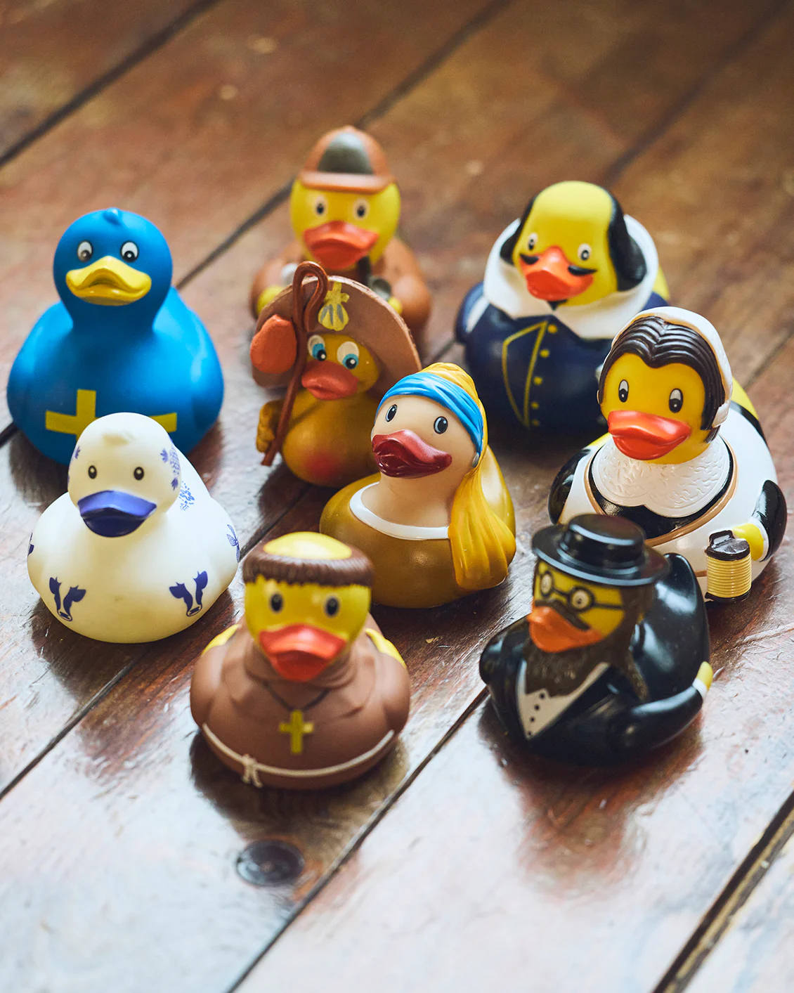 ▲田中さんのあひる(ラバーダック)コレクションの一部。世界各国の土産店などでご当地ダックを見かけるたび、少しずつ集めてきた