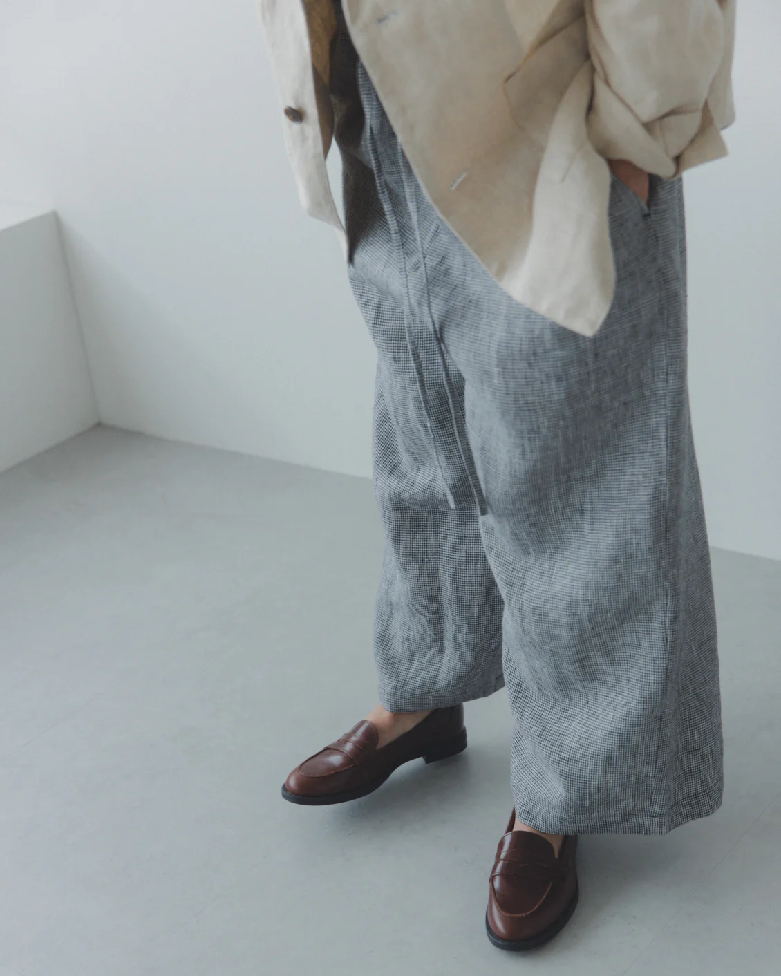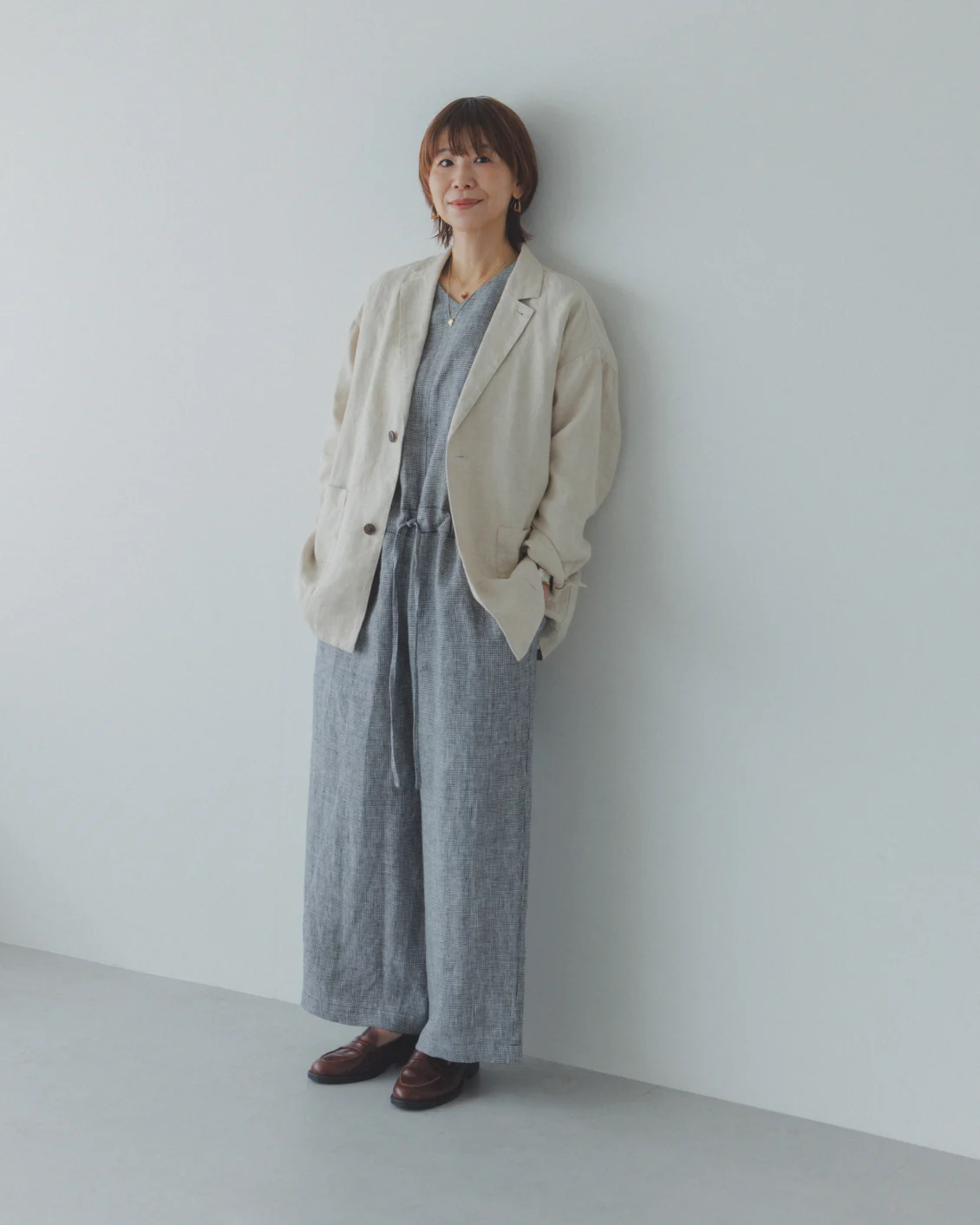 「リネンならではのニュアンスが、ほどよく力の抜けた大人なコーディネートにまとめてくれるなと思います」▲足元はローファーでかっちりとした印象に。裾はロールアップしてもOK