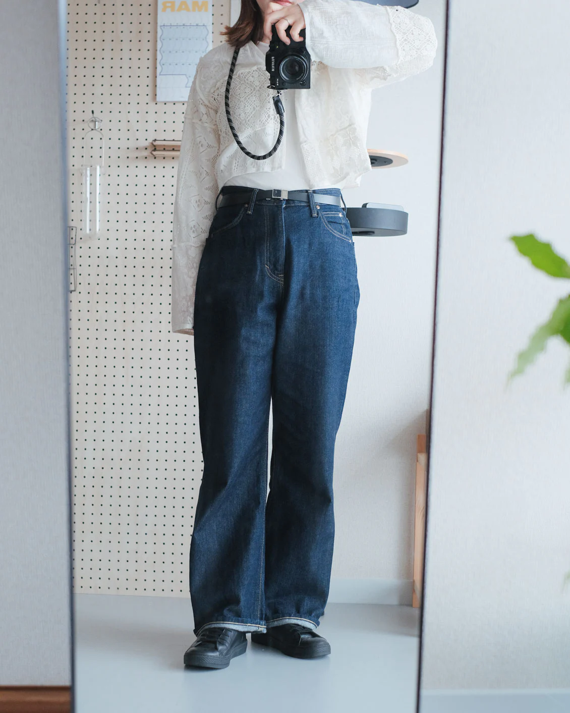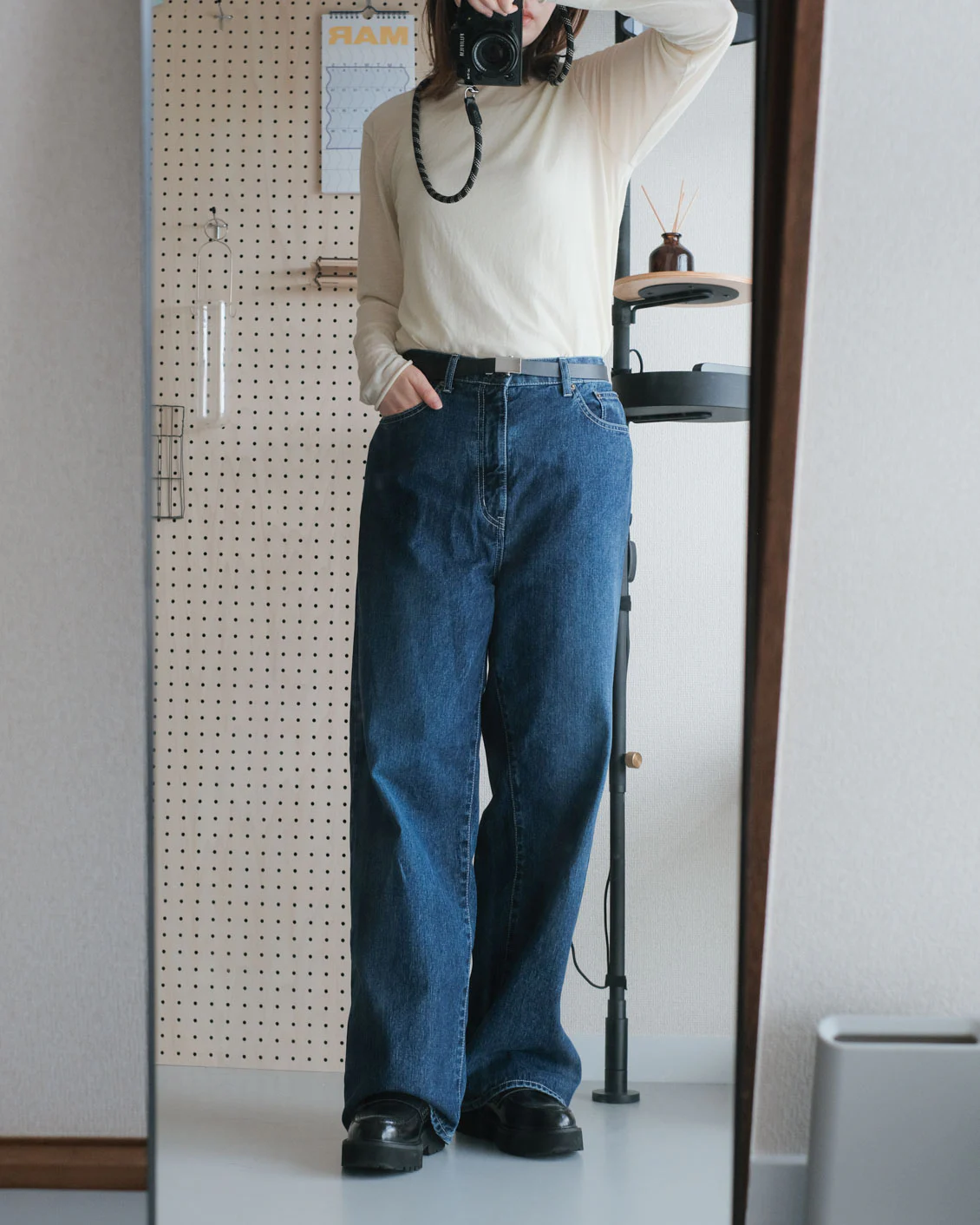 ワイドストレートの潔い王道さがお気に入りで「デニムをはいているぞ!」という嬉しさがあるので、気分を上げたい月曜日のコーデに。