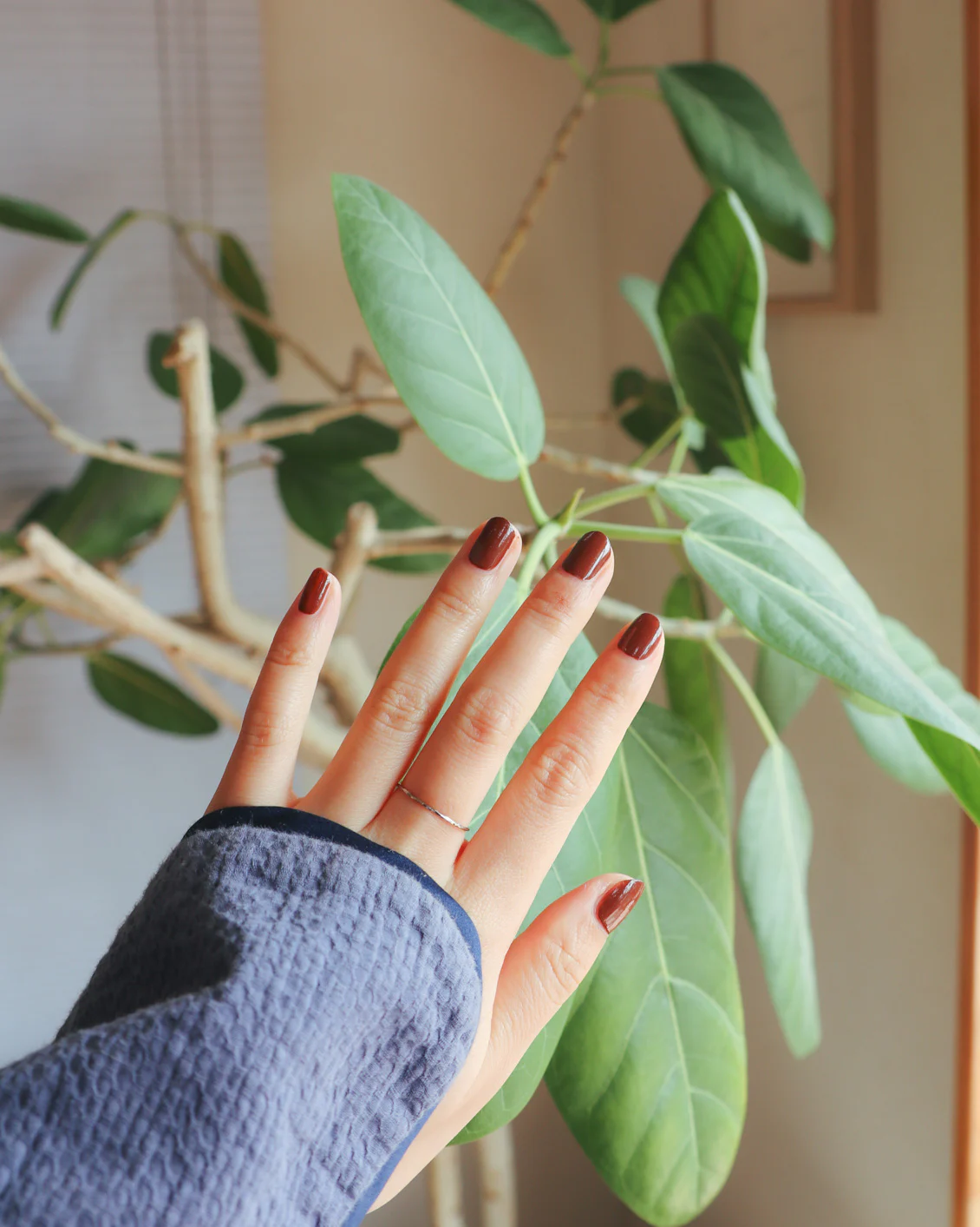 前日寝る前と当日家を出る前に「ヨシっ!」と気合を入れているのですが、指先に濃いめの赤や茶色っぽい色味があると、ちょっとだけ、強くなれる気がするんです。