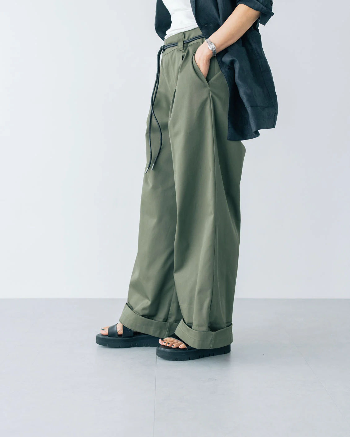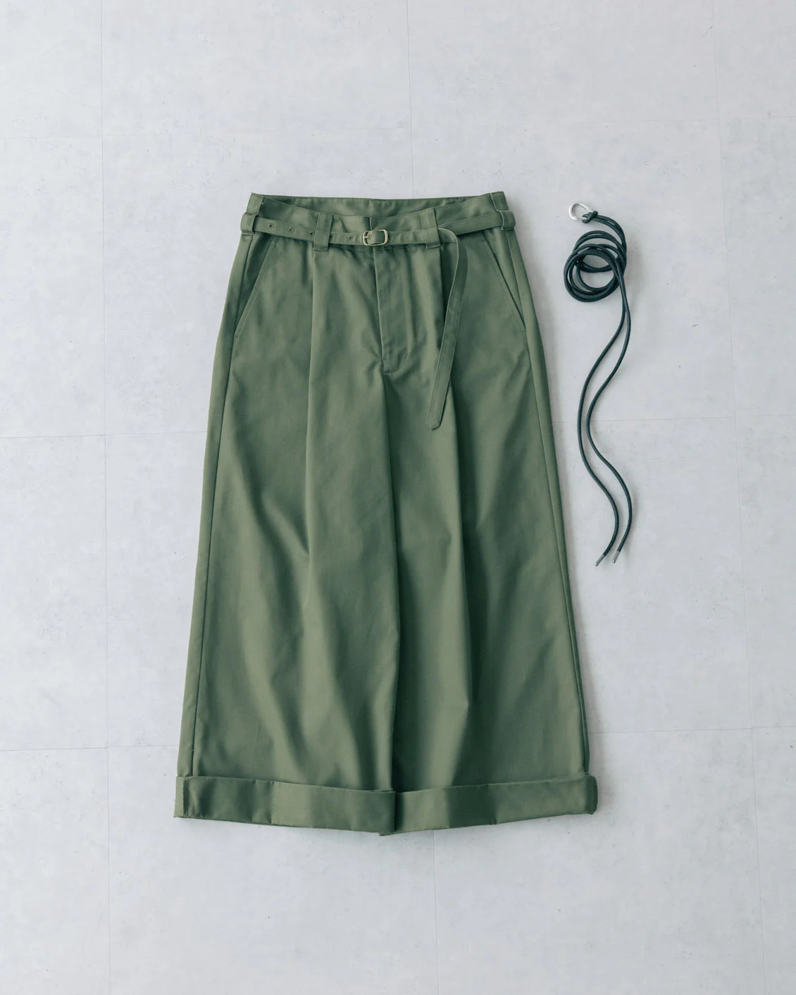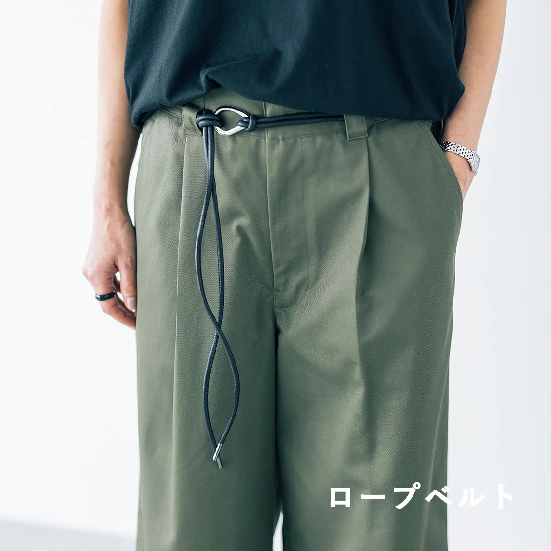 特にこの『ロープベルト』は、開発にあたって外すことができないアイテムでした。黒ベルトをさりげなく垂らしているコーデに憧れを持っているのですが、実際これでいいのかな?と迷いもありました。