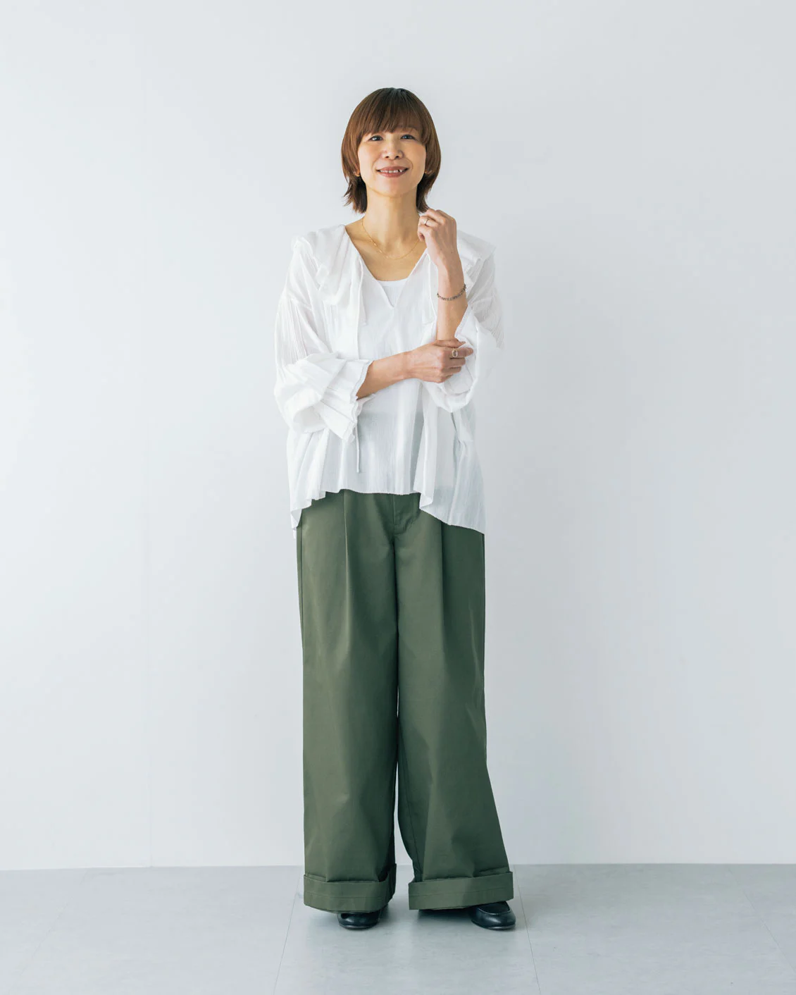 「50代になったばかりの今、新しいアイテムにチャレンジしたい気持ちと、歳を重ねた自分に似合うスタイリングが分からず悩む気持ちの間で揺れ動いていて。こうした悩みは、年齢の節目節目で感じることだなぁと。