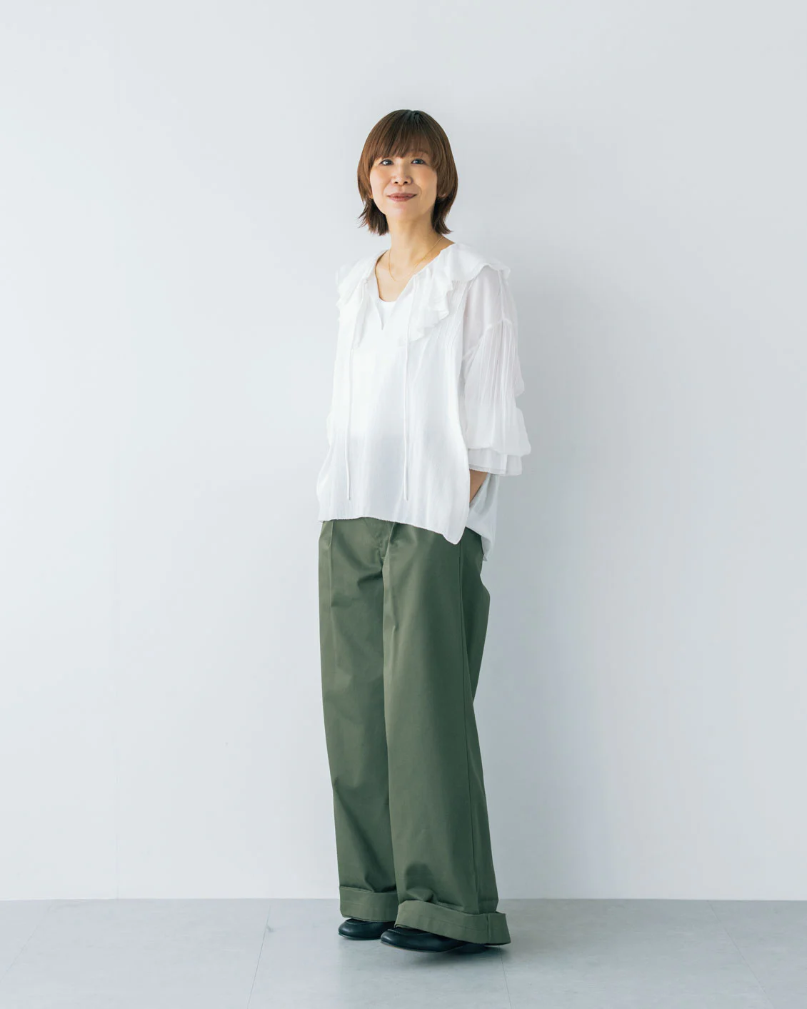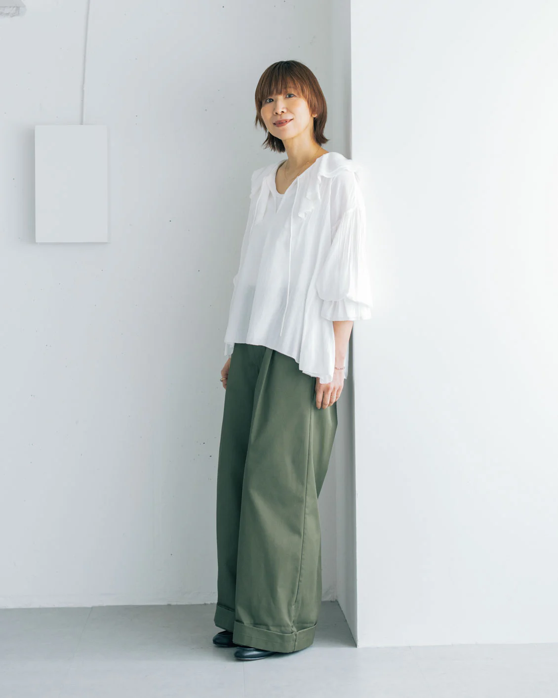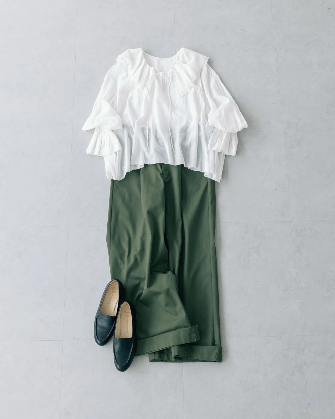 フリルブラウス×ワイドチノ