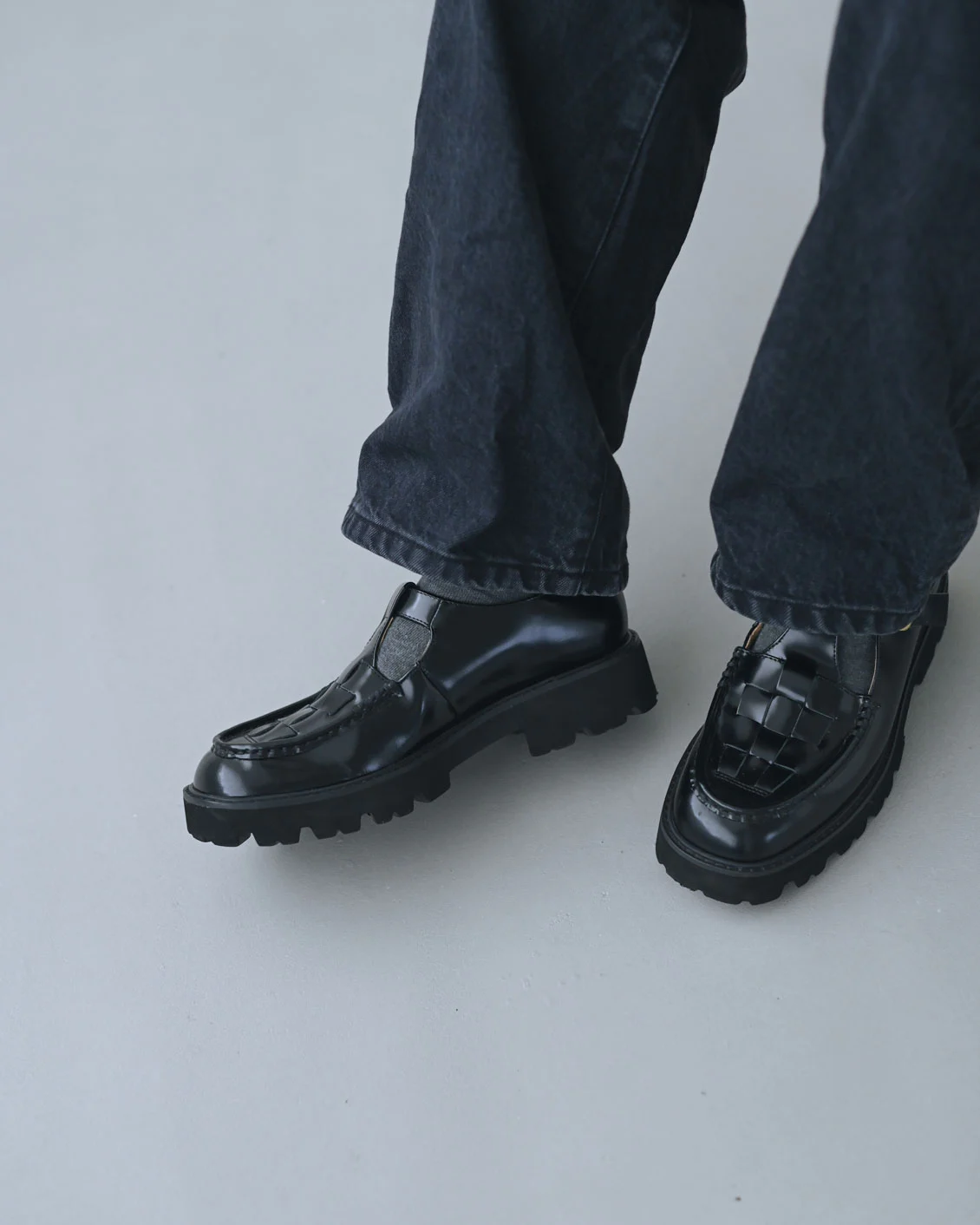 「アンサンブルニットやデニムと合わせて、オールブラックのコーデにしてみました。革のツヤっとした質感がアクセントになってくれるので、ブラックコーデの足元に重宝しています。