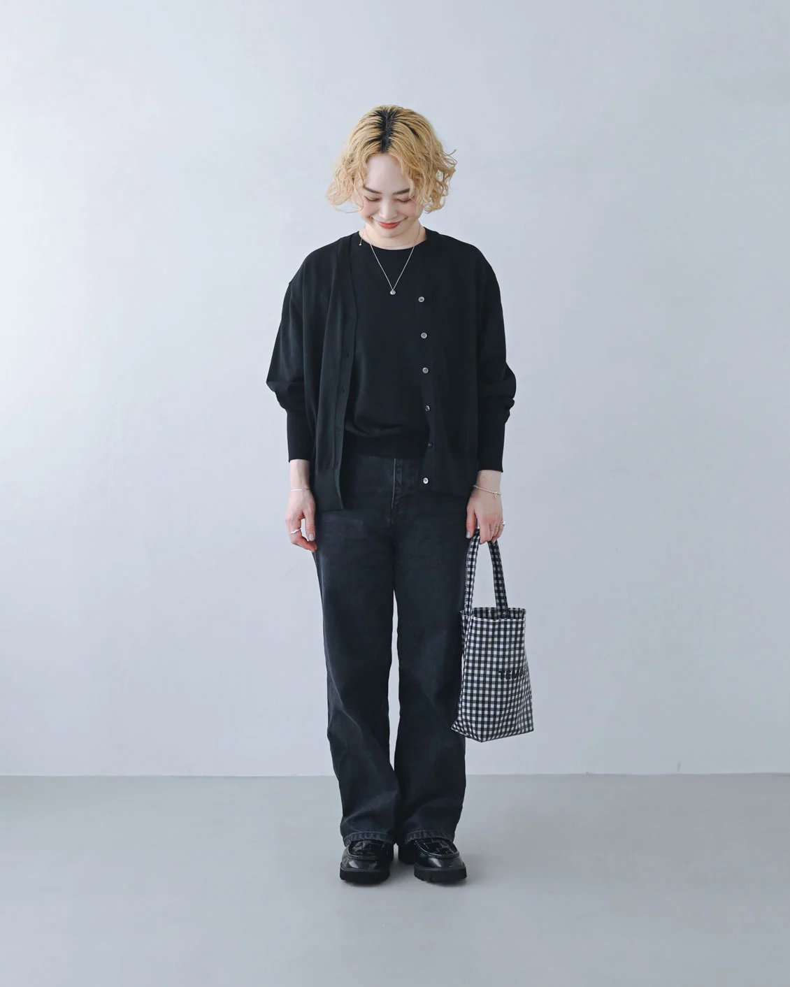 オールブラックでも、つやっと軽やかに。