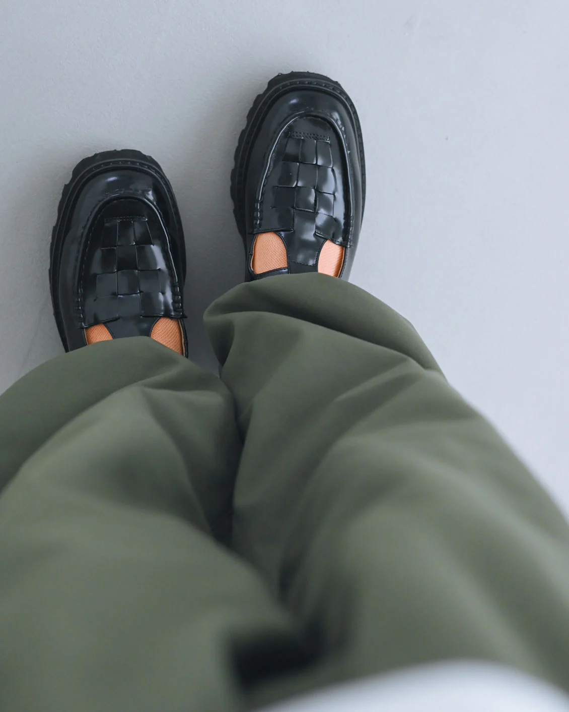 「パンツから見えるすっきりとしたスクエアトゥも、かっこよくて好きです。フルレングスのパンツをはいたときにつま先だけ見えると、ローファーのような雰囲気もあるなぁと感じます。