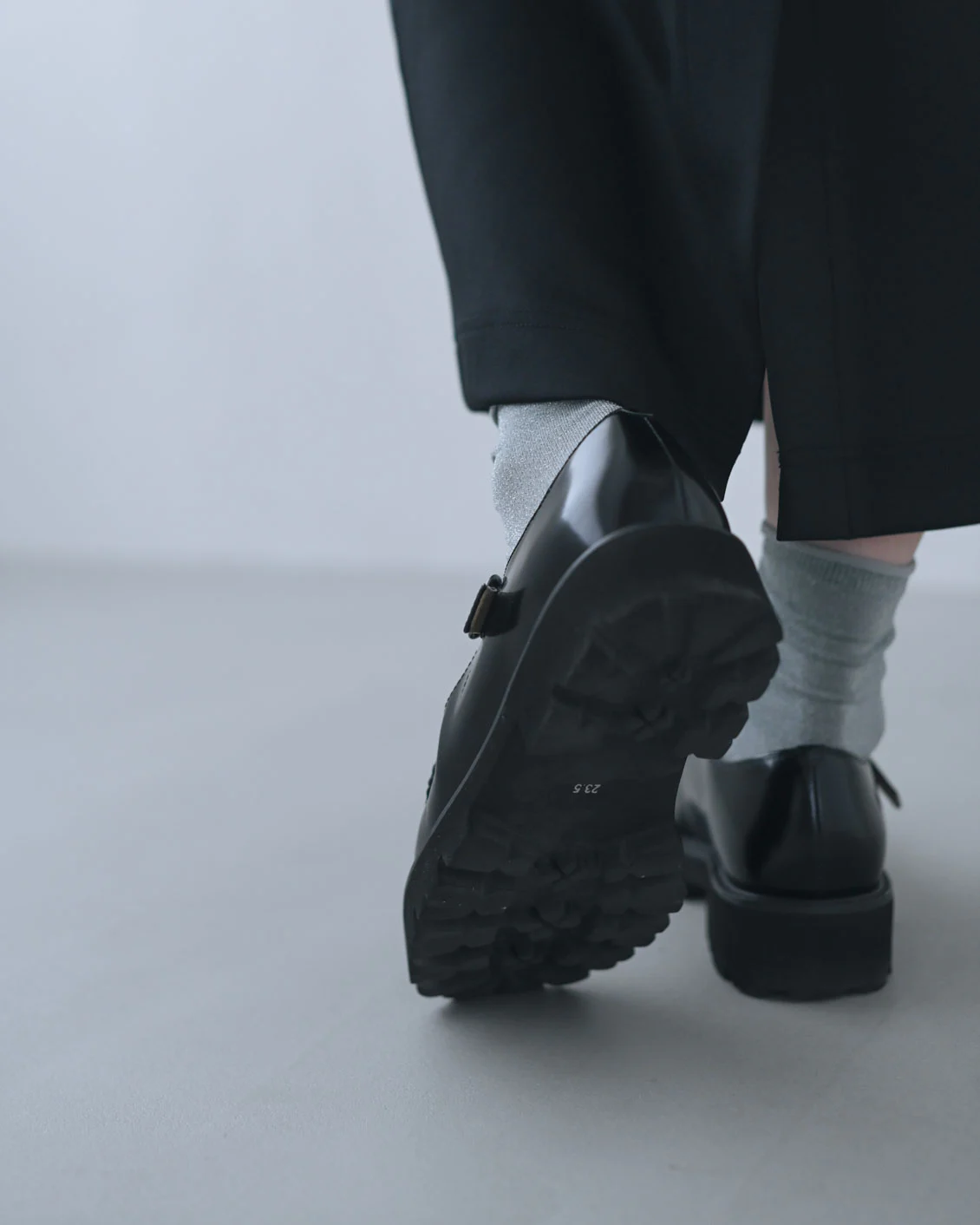今まで革靴はフラットシューズしか持っていなかったのですが、この靴を履いてみたら、足元にボリュームがあると全身のバランスが取りやすいんだと気づいて。1ヶ月ほど前に手に取ったばかりなのですが、最近外出するときには、この靴かスニーカーかの二択になるほどの活躍ぶりです」