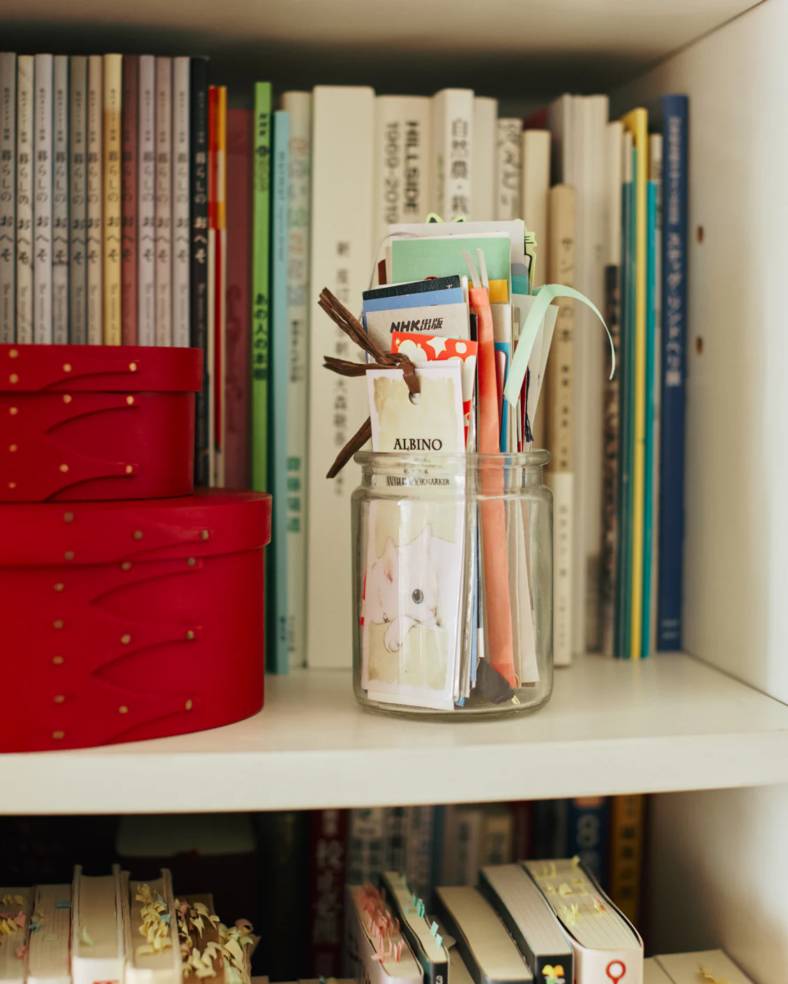 ▲いま読んでいる本は、ハンドル付きのシェーカーボックスにひとまとめ。