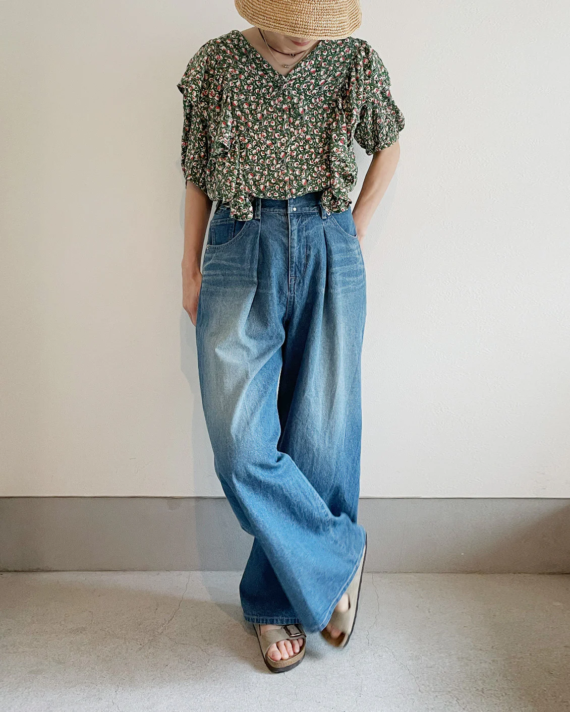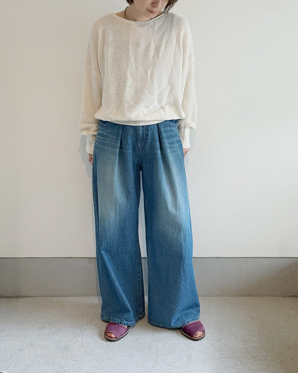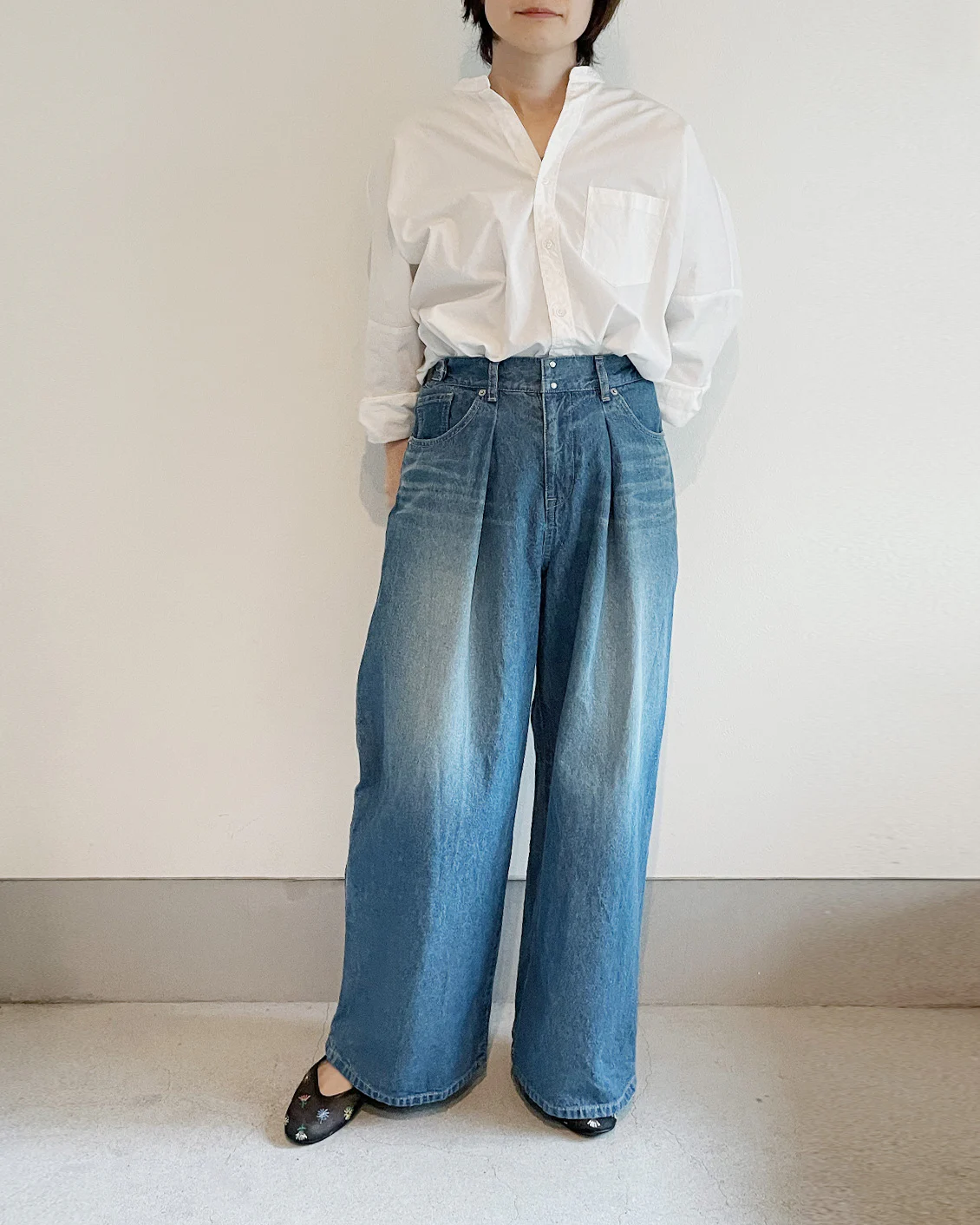 そんな中、「これなら思い描いた着こなしができるかも!」と手に取ったのが、当店オリジナルのワイドパンツでした。