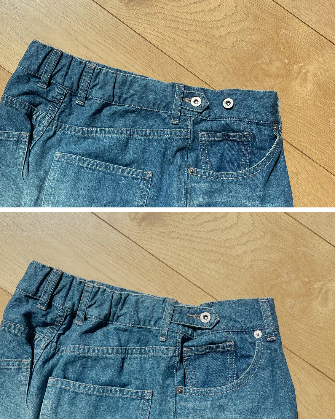 デニム自体で調整できるから、お手洗いの度に直さなくて良いのもうれしいポイントでした。