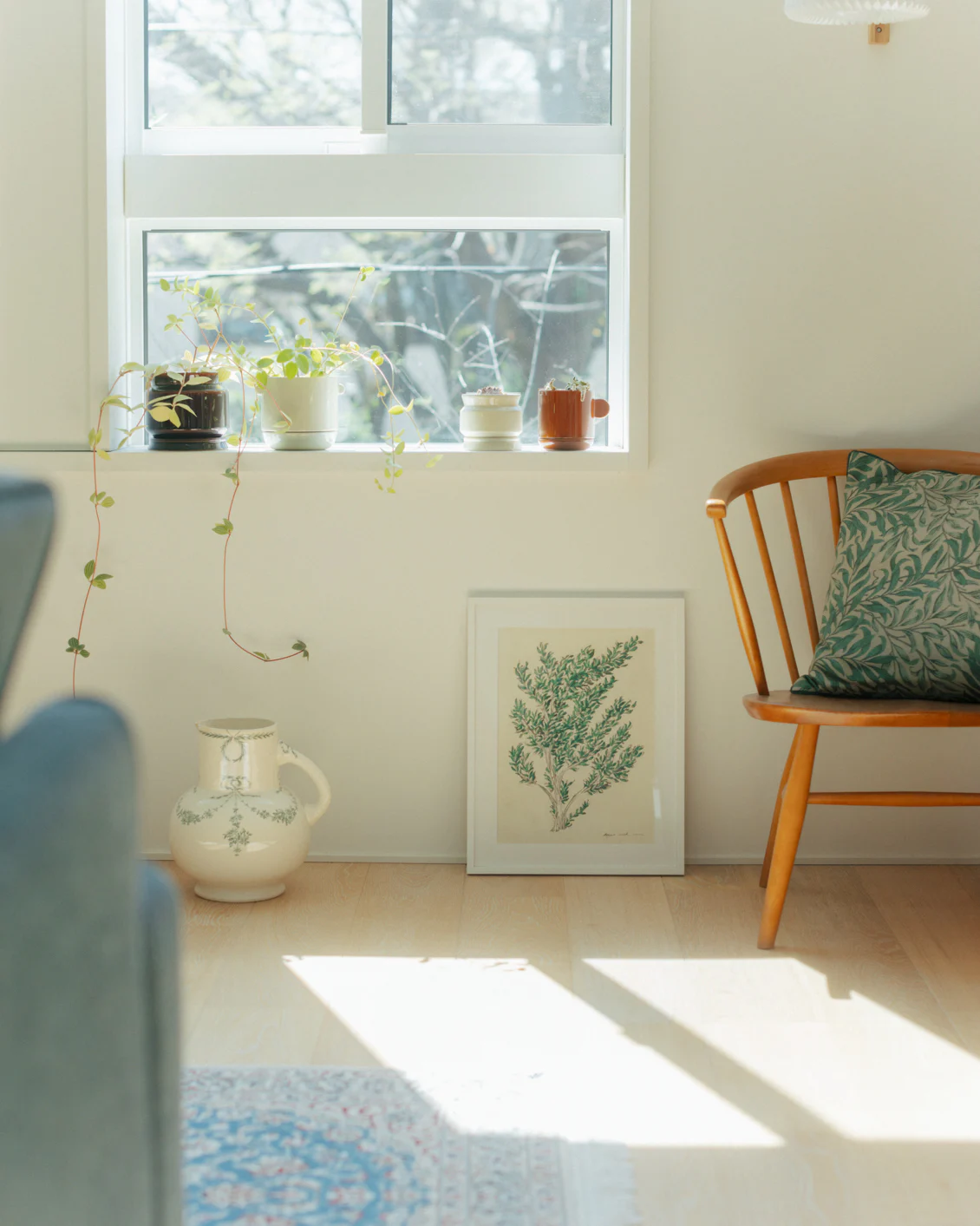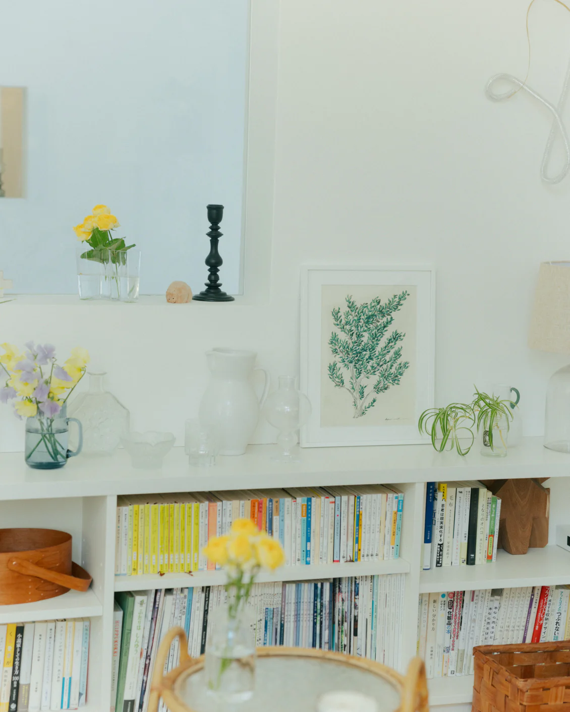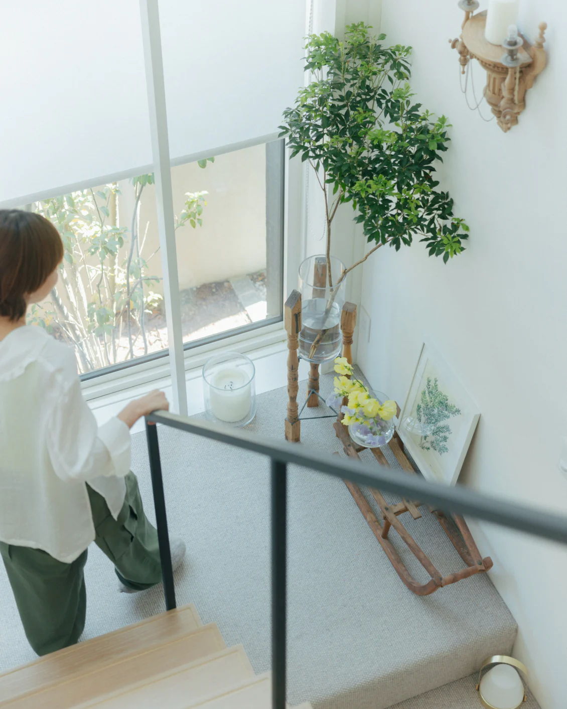 「リビングの窓辺に立てかけてみたり、階段下にある花を飾るスペースに置いてみたり、お気に入りの雑貨と棚に飾ってみたり、家のいろんなところに置いてみました。