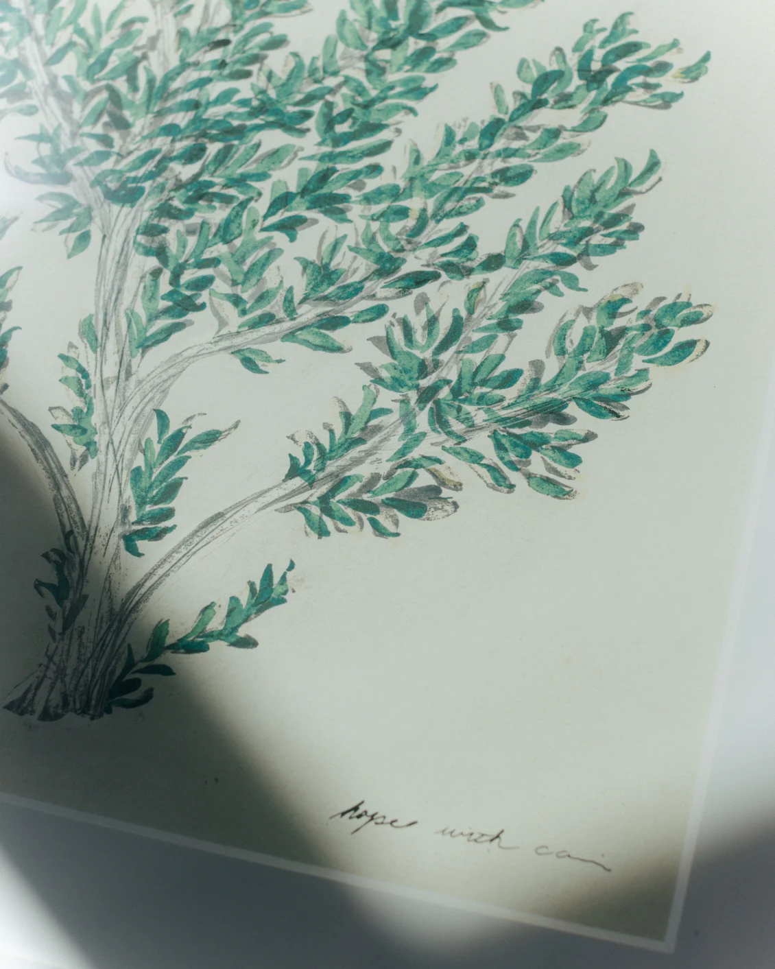 おだやかな白いフレームの中で、ありのままの姿を見せてくれる一本の木。「希望の木」と名付けて、アートを初めて買う人でも、おおらかに付き合える額付きのポスターをつくりました。