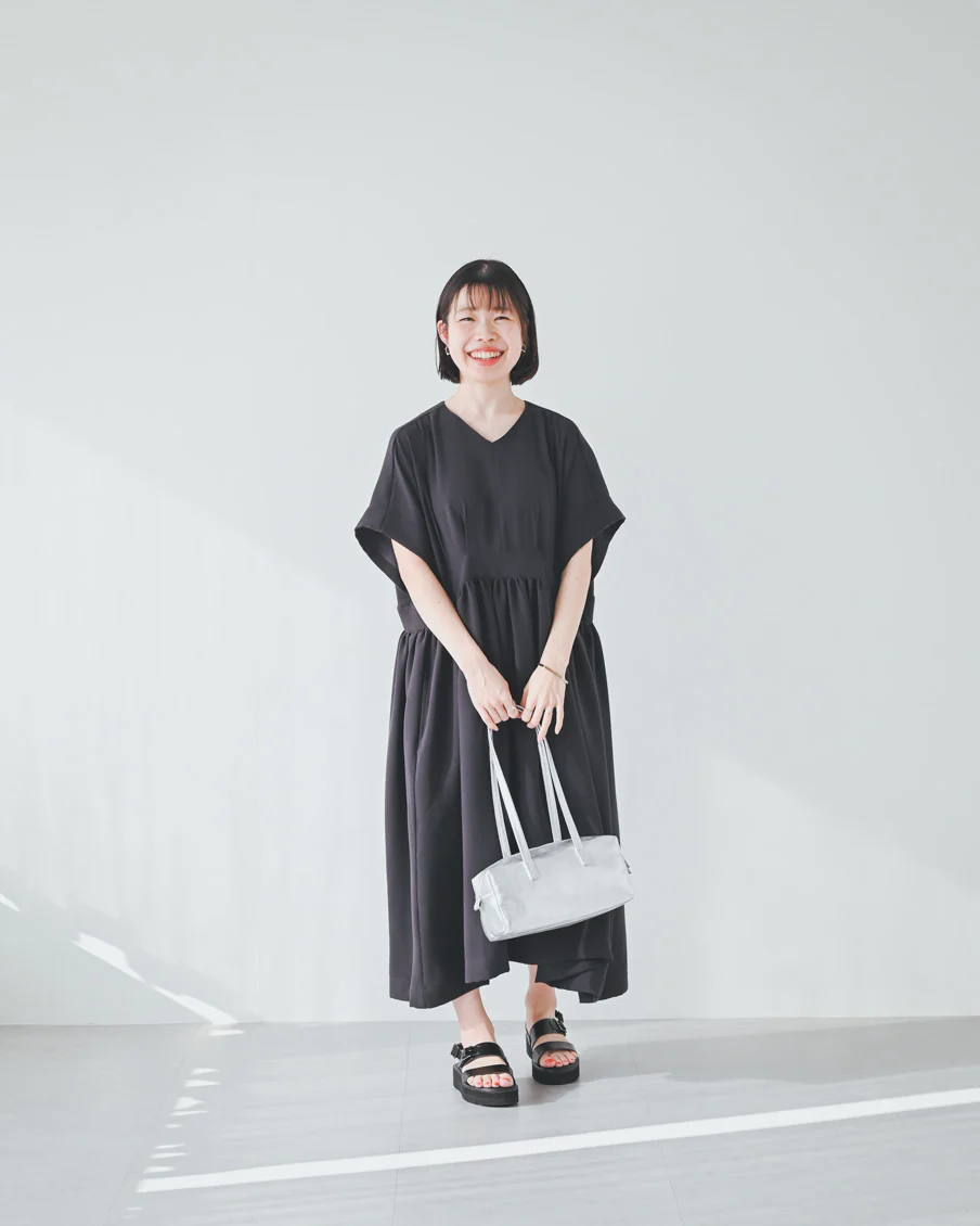 「肩の力を抜きつつ、どこかピリッと大人っぽく着られるワンピースですね。