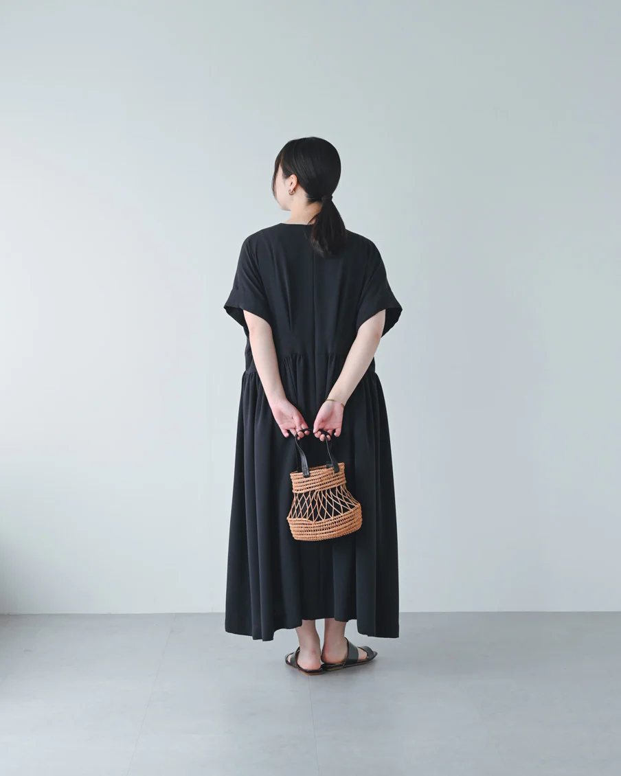 素材のバックサテンジョーゼットは、外側にほんのり表情があるざらっとしたタッチですが、内側の肌当たりはさらさらで、暑い日でもべたつかないなと感じました。