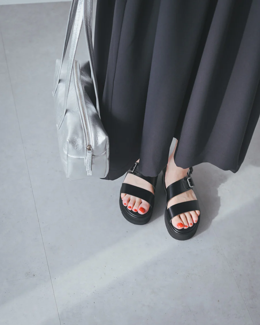 カゴバッグやフラットサンダルと合わせてラフに着ても、素材に高級感があるので、食事やちょっとした集まりにも対応できそうです。