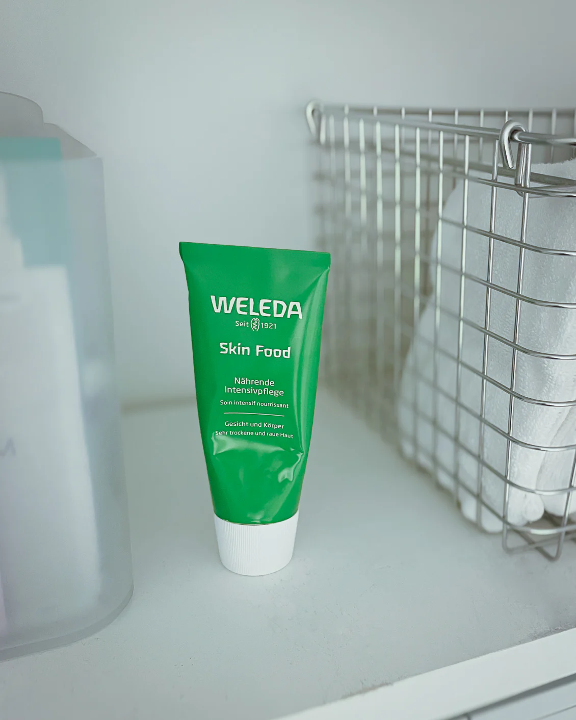 そこで手に取ったのが、塗った後のベタつきが気にならなくていいよ!とおすすめしてもらった「WELEDAの全身用クリーム」。