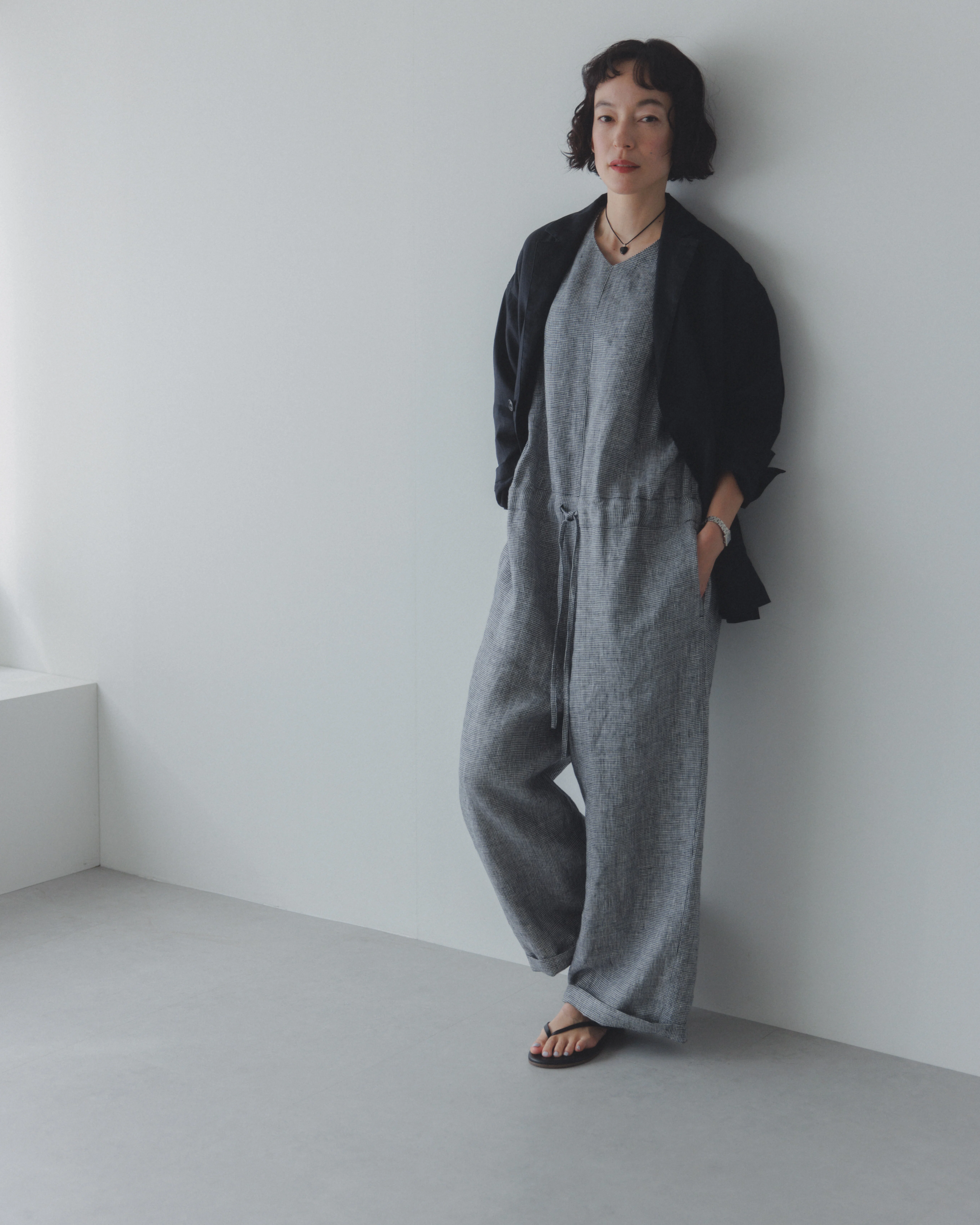 第1弾のジャケットに続き、第2弾のオールインワンもこれからはじまる本格的な夏に向けて、ワードローブのスタメンとして活躍してくれるよう、両チームで願いを込めてつくりました。