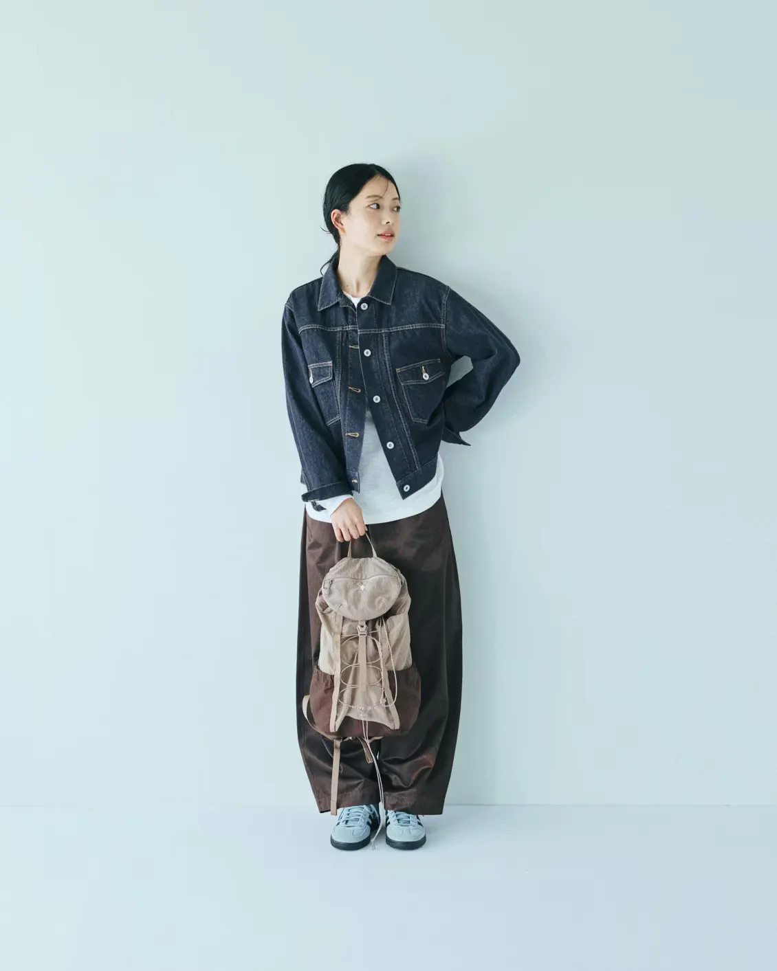 それでいて、ナイロンのマットな質感がコーデにほどよい抜け感を加えてくれます。