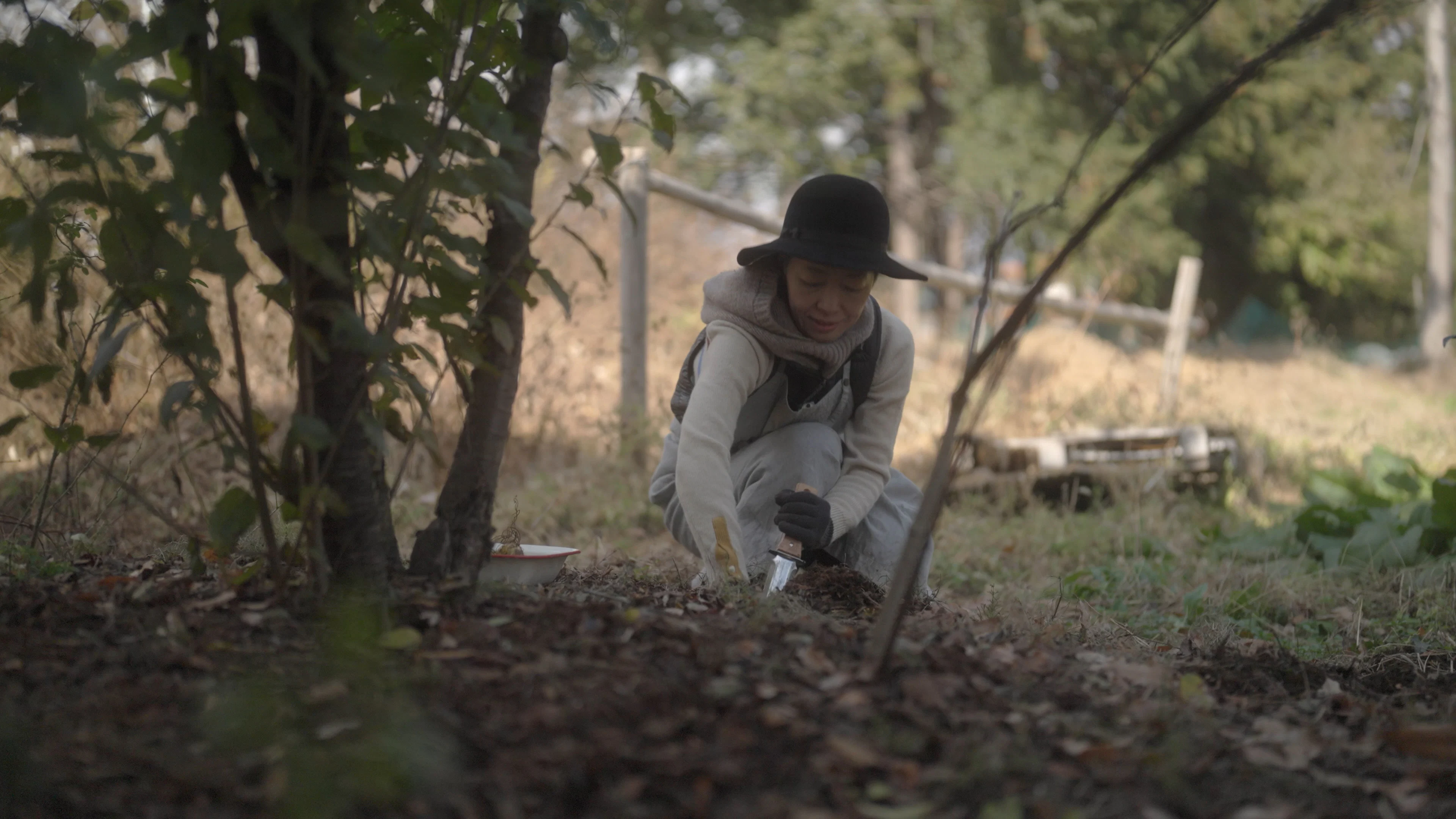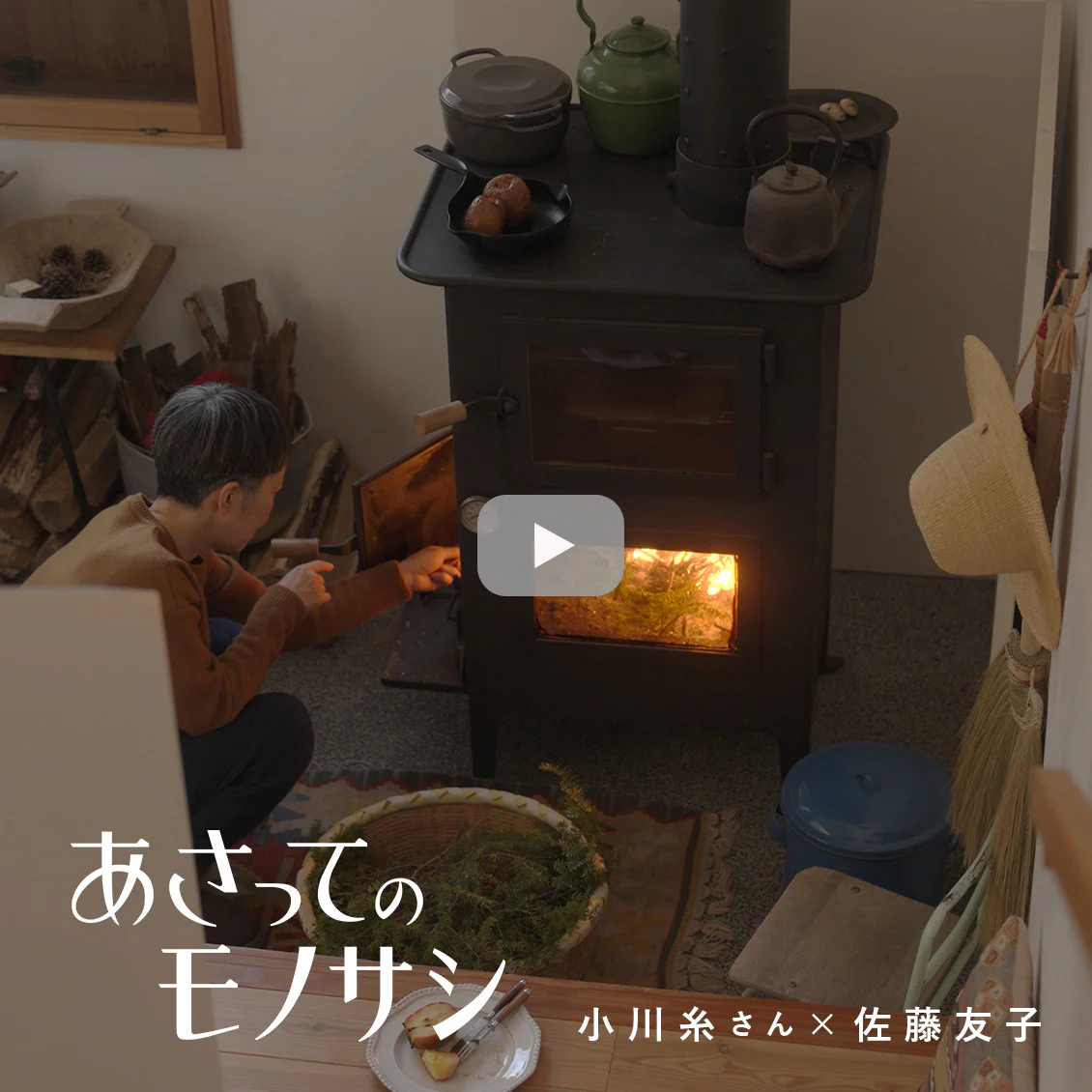 撮影隊が訪れたのは冬が深まる手前の頃。薪ストーブで暖をとっているという生活で、ミニチェーンソーを手に持ち、大きな枝をウィーンと切っていく力強い小川さんの姿に魅了されるところから始まりました。