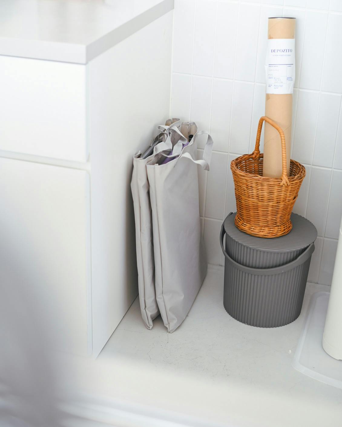 使わない時は、サッとたたんでスリムな形に。 クローゼットや家具の隙間にスッと収まるので、収納場所にも困りません。