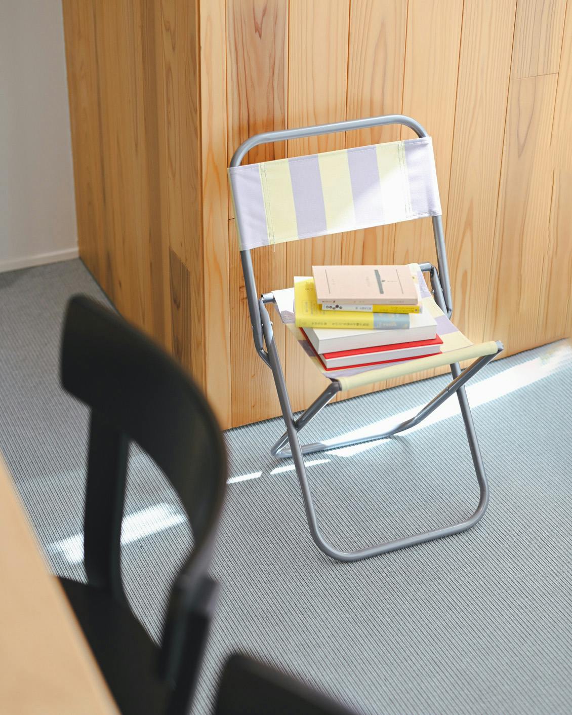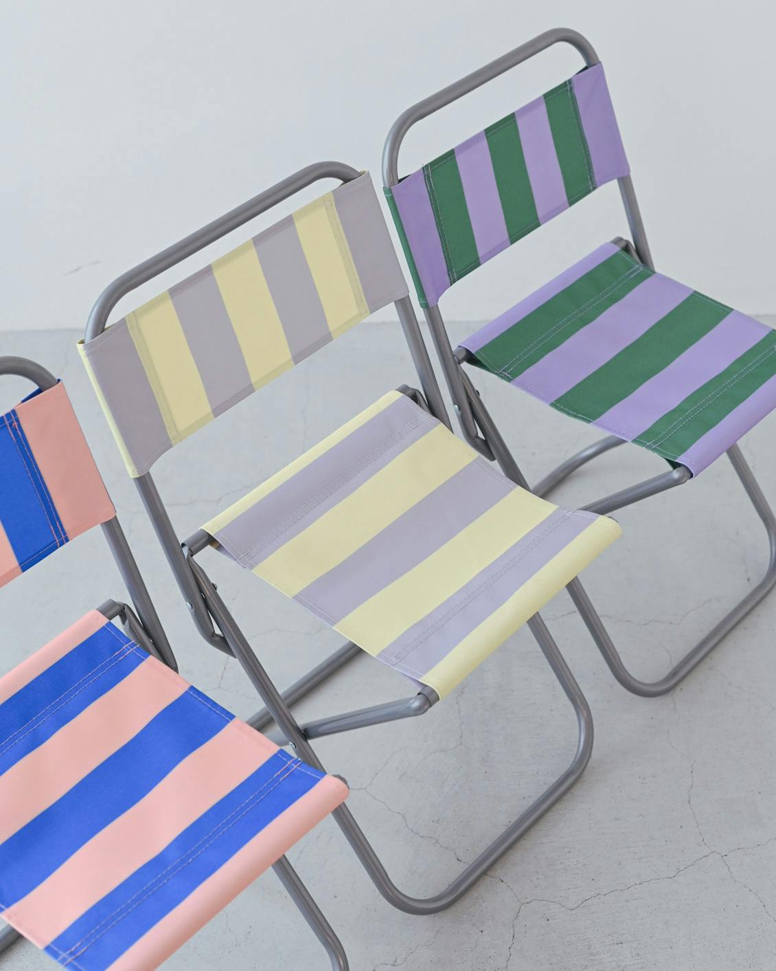 本日ご紹介するのは、パッと目を引くカラフルなストライプ柄が可愛い、amabroの「折りたたみチェア」。