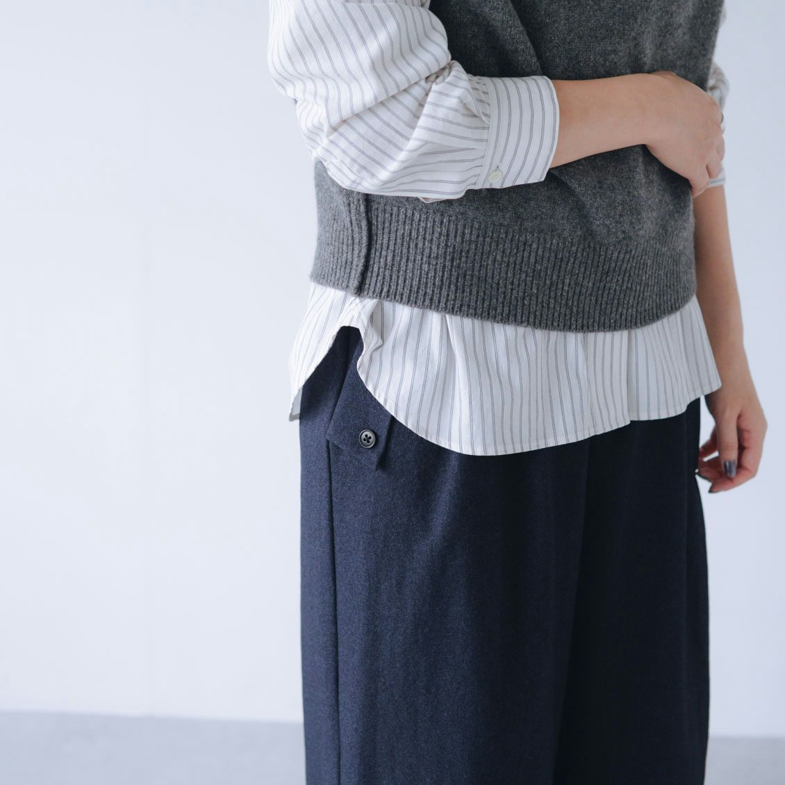 たっぷりとしたワイドシルエットは体型を拾わず、締めつけフリーなはき心地。それでいてきちんと見えも叶う、当店の "新定番ワイドパンツ" です。