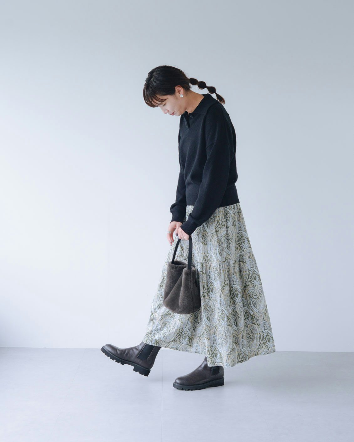 スカートがコットン地なので、ニットやファーといった冬らしい素材に合わせても重たくなりすぎないのがいいなと思いました」
