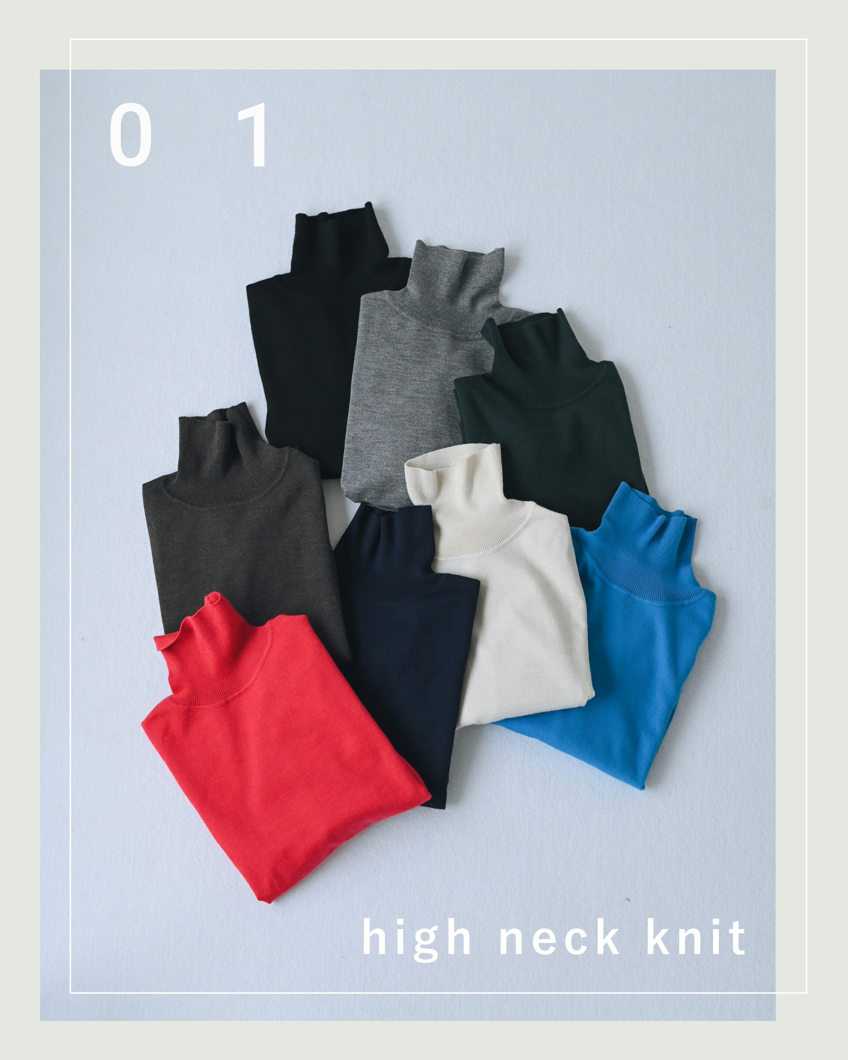 まず初めにご紹介するのは、「着回し広がるハイネックニット」。1枚でも重ね着でも頼りになる薄手のハイネックニットで、全8色をご用意しています。