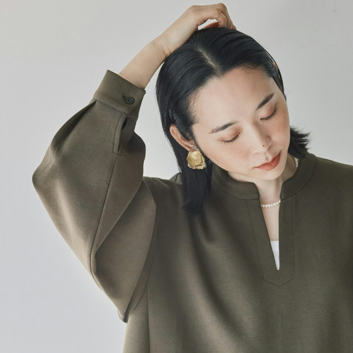 タートルと合わせても、襟のラインが首元をスッキリと綺麗に見せてくれるようです」
