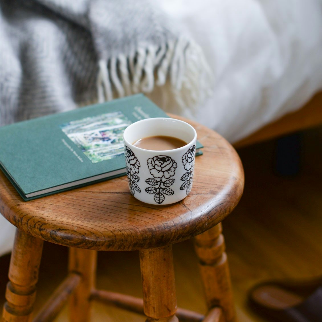 女性の手に収まるコンパクトなラテマグは、紅茶やお茶はもちろん、ヨーグルトやスイーツにもぴったりです。