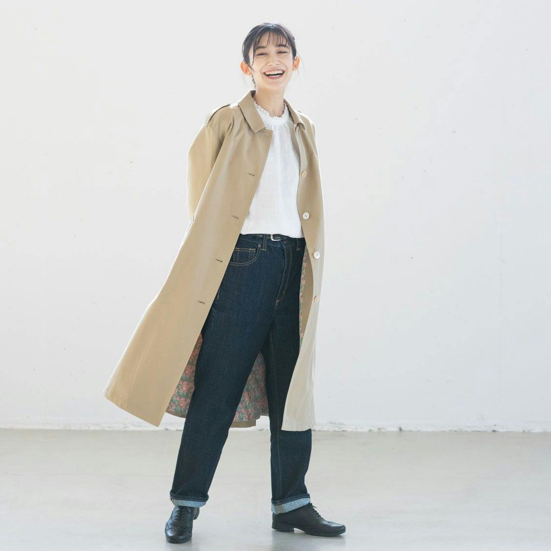 スタッフにもファンの多いブランド、「ポルテデブトン」のトレンチコートは、どこから見ても美しいシルエットや、ちらりと見える裏地にまでとことんこだわりが詰まったアイテムなんです。