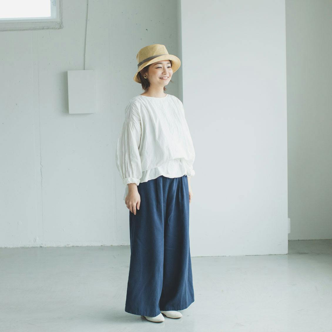 日差しが弱い日には少しツバを折ってアレンジしたら、甘さが控えめになった気がして、マニッシュな服装が好きな自分にもフィットしそうです」