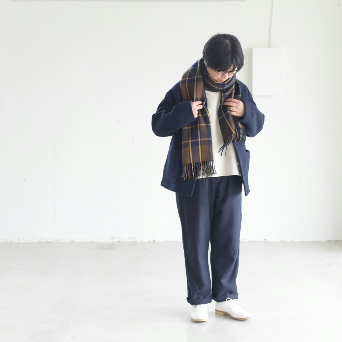 このネイビーは上品な色合いなので、ボーダーなどと合わせてフレンチテイストで着ても、きっと素敵だと思います」