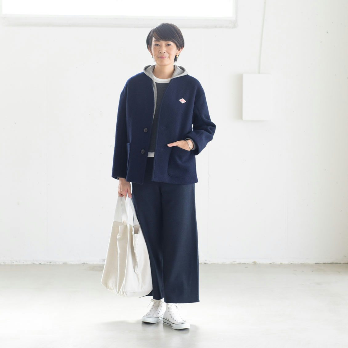 カジュアルな服装でも、ノーカラーのジャケットのようなきちんと感があっていいな、と思いました」