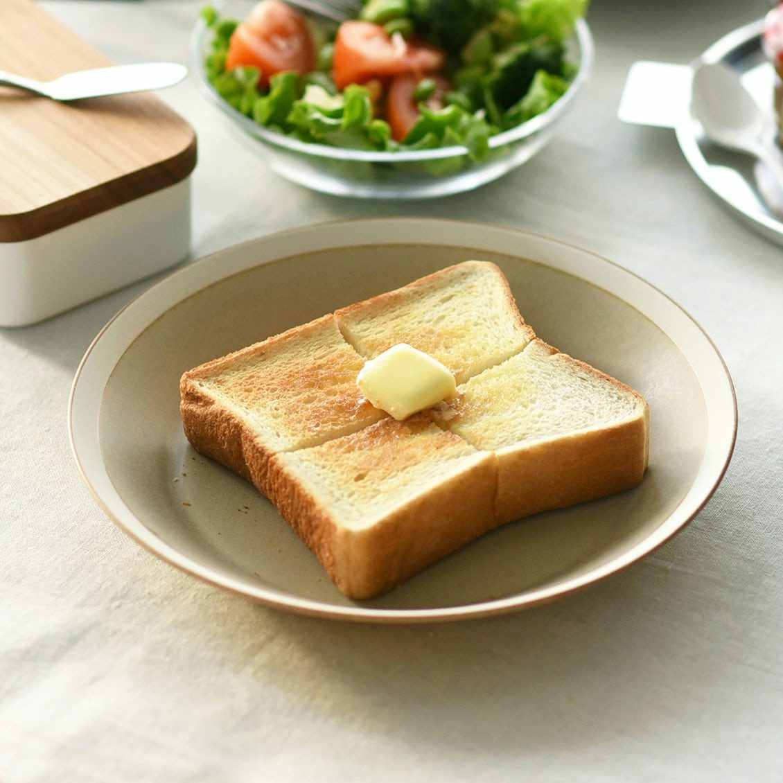 トースト1枚がぴったりおさまるこのサイズは、朝食から、ワンプレート、夜ごはんのメインのおかずまで受け止めてくれる、懐の深〜い存在。
