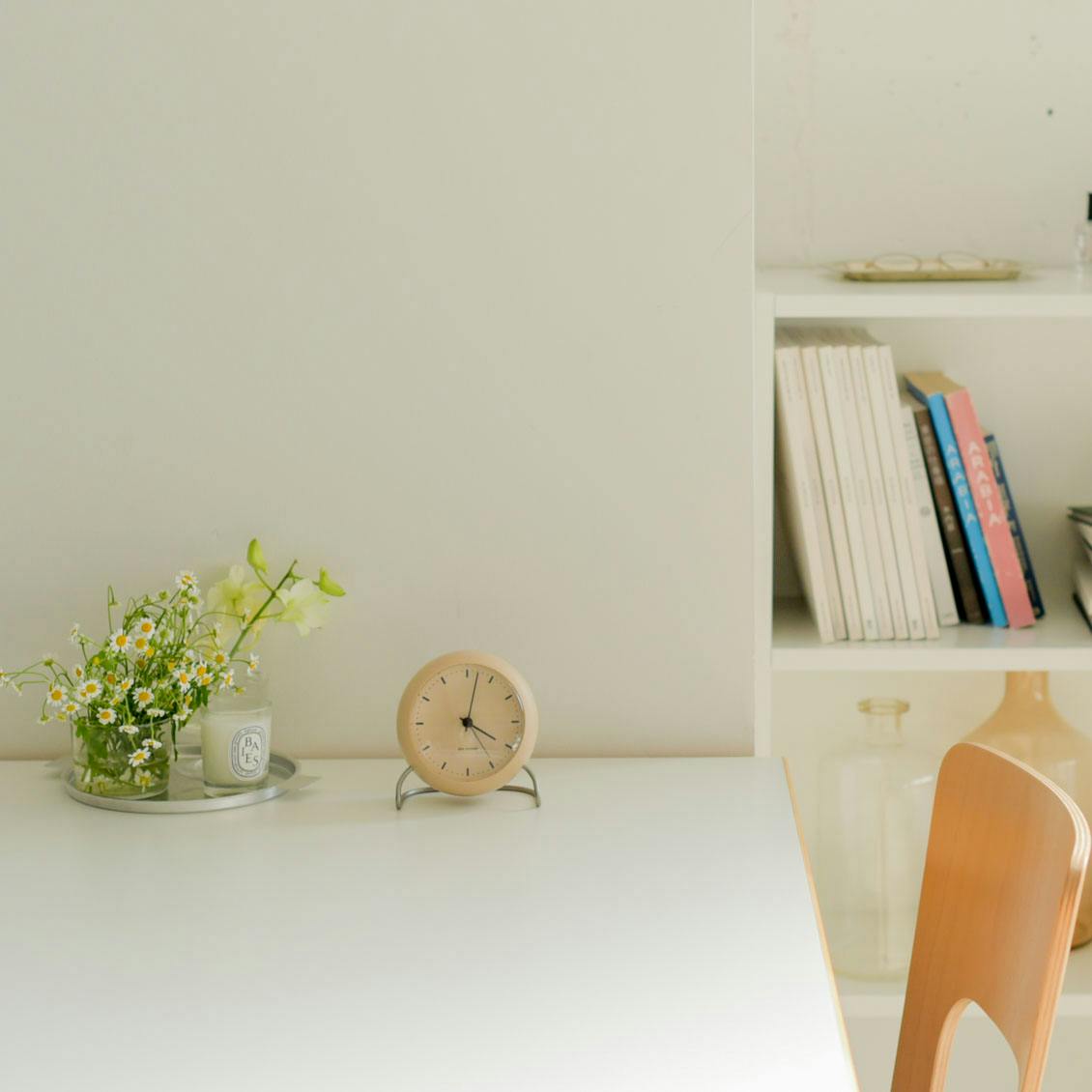 高さ12cmのコンパクトな置き時計だから、デスクはもちろん、玄関やリビングなど気軽に取り入れやすいのも嬉しいところ。