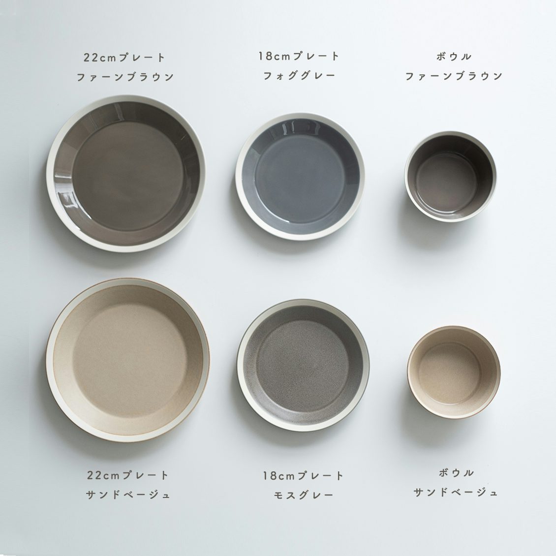 「ファーンブラウン」「フォググレー」を合わせれば、大人っぽく落ち着いた印象の食卓に。