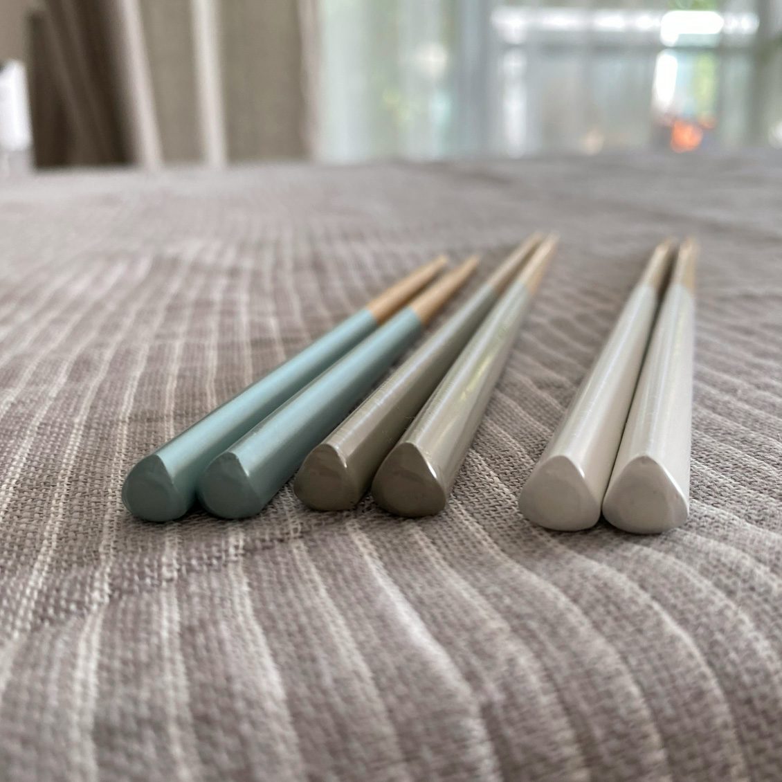 買い換えのきっかけは娘のお箸デビュー。そろそろトレーニング箸から卒業しようかな?というときに「手になじむ」というワードに惹かれたんです。せっかくだからと、家族分まとめて三角形のお箸を迎え入れました。
