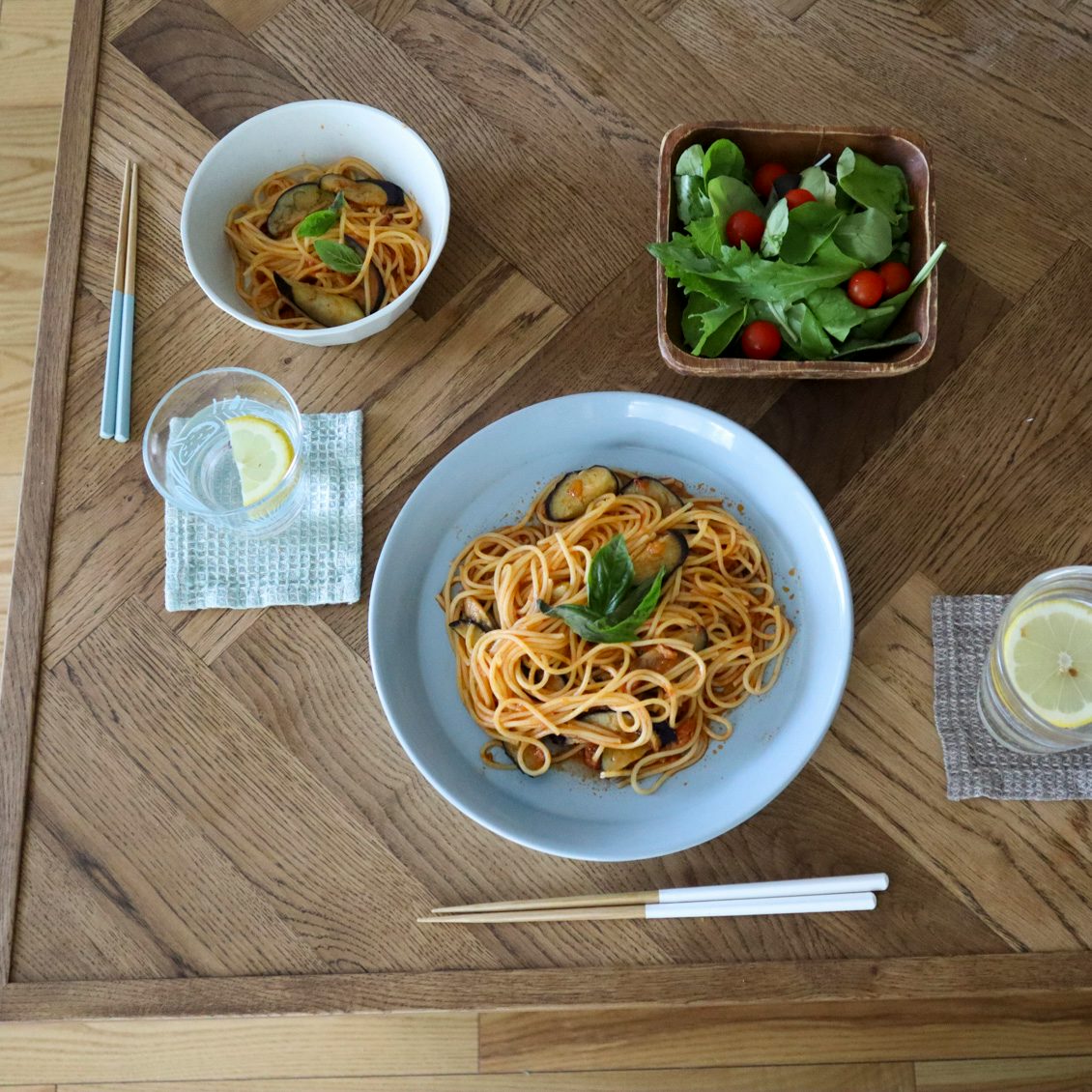 パスタもお箸で食べる派の我が家では、いかにも「和」なものだとちょっと違和感があって。このお箸は洋食にも合うお箸だなと思いました。