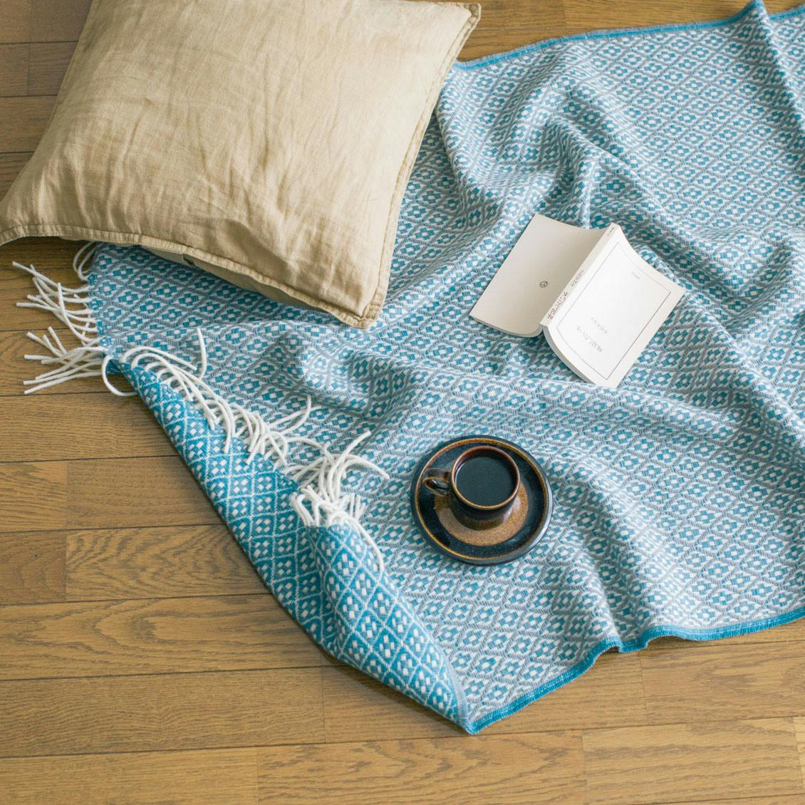 このブランケットを見たとき、北欧のテキスタイルにも通じるような、可愛くて大人っぽい柄が素敵!と思いました。