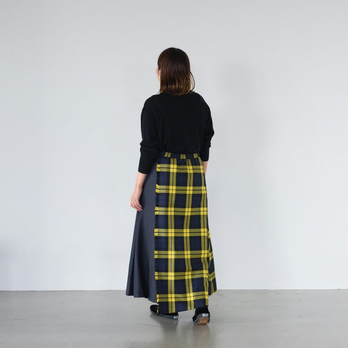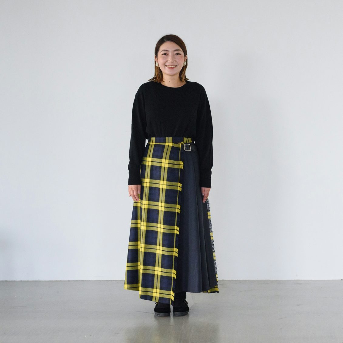 私が持っているアウターはネイビーなので、冬はダークトーンになりがちなのですが、こういう主役級のスカートが1枚あると重宝しそうです」