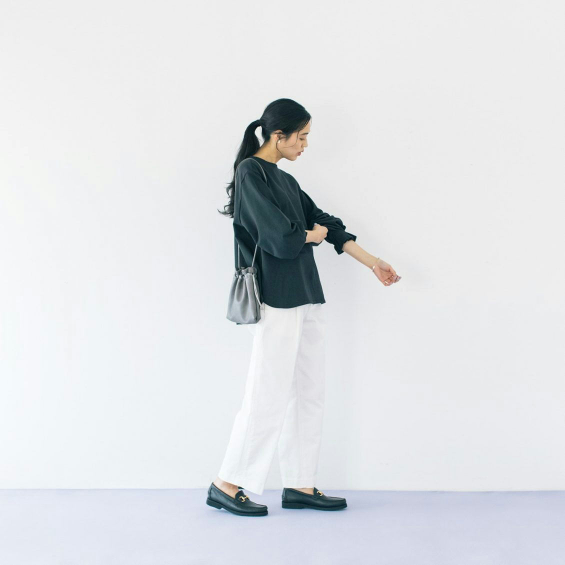ほどよい生地厚はインコーデももたつくことなく、上からニットやカーディガンを重ねて着用できます。まだ肌寒い今の季節から、コーデを変えて楽しめますよ。