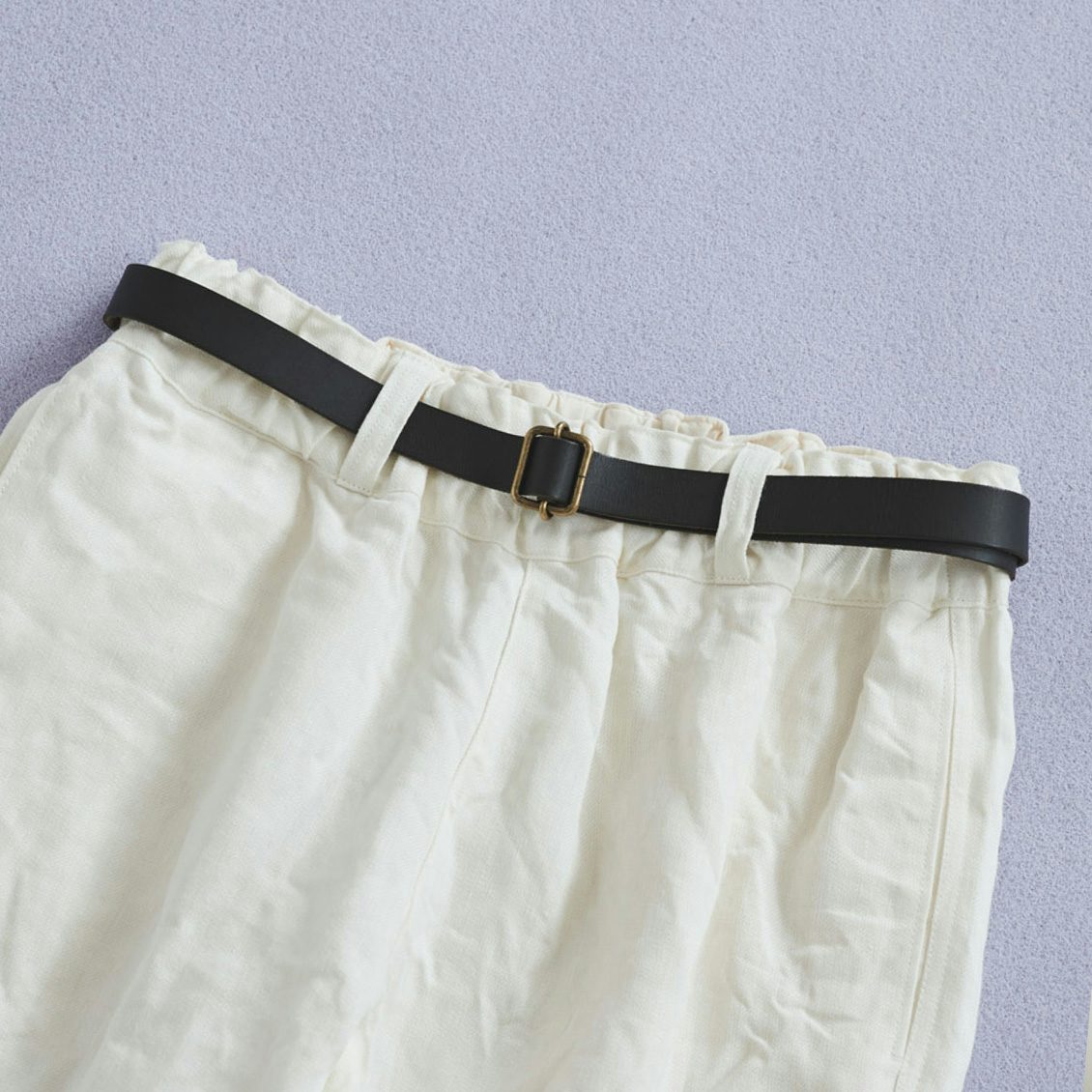 ベルトループがついているので、ベルトを通して調節も可能。トップスをインするときもサマになりますよ。