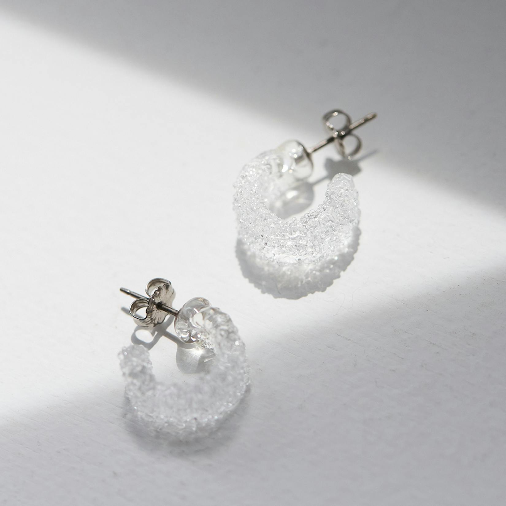 トゥインクルイヤーカフ:ピアスと同じ雪解けをモチーフにした、ガラスでは珍しいイヤーカフ。見た目ほど重さは感じず、1日着けていても気になりません。