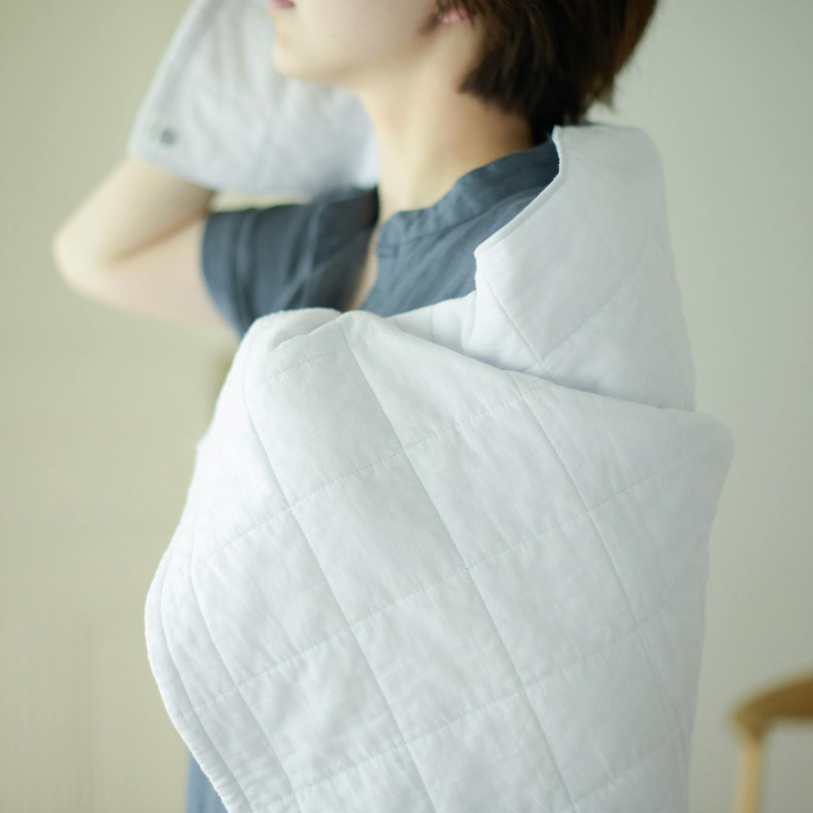 その心地よさの秘密は、医療用脱脂綿をガーゼで挟みキルトをかけた『pasima(パシーマ)』という特別な生地を使用しているから。